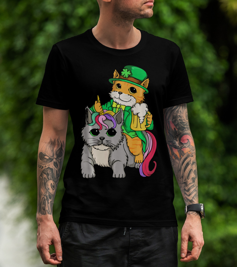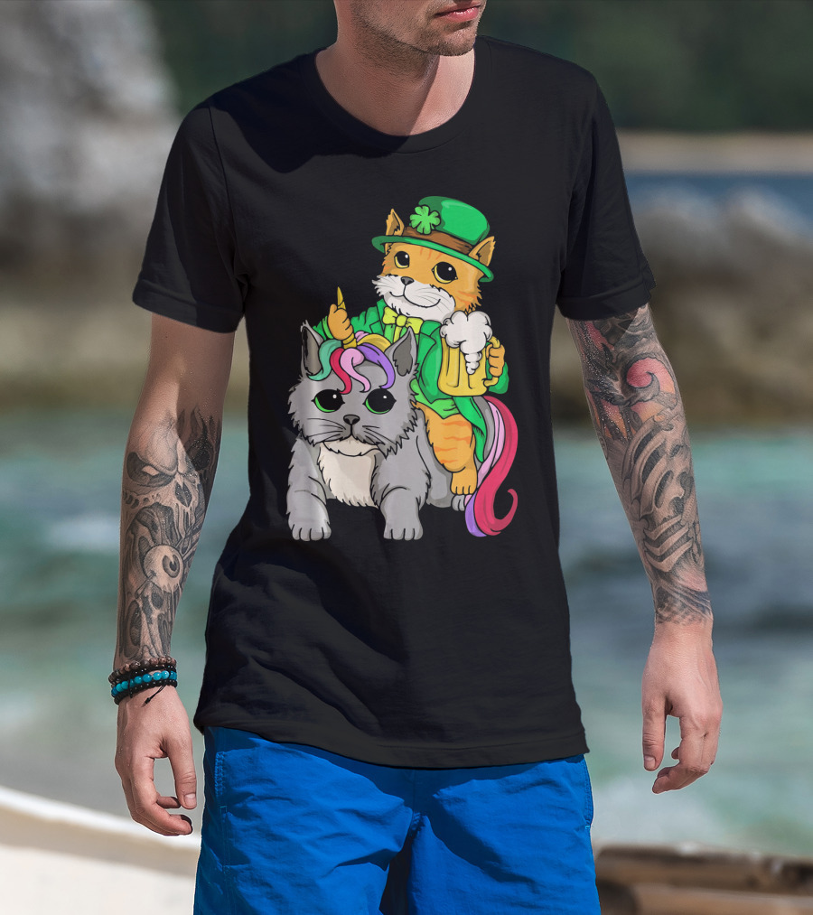 St Patricks Day Caticorn Cat Unicor Shamrock Beer Mug T-Shirt