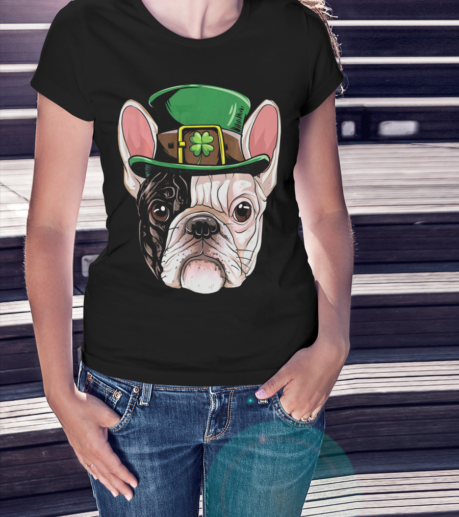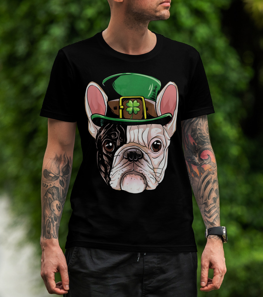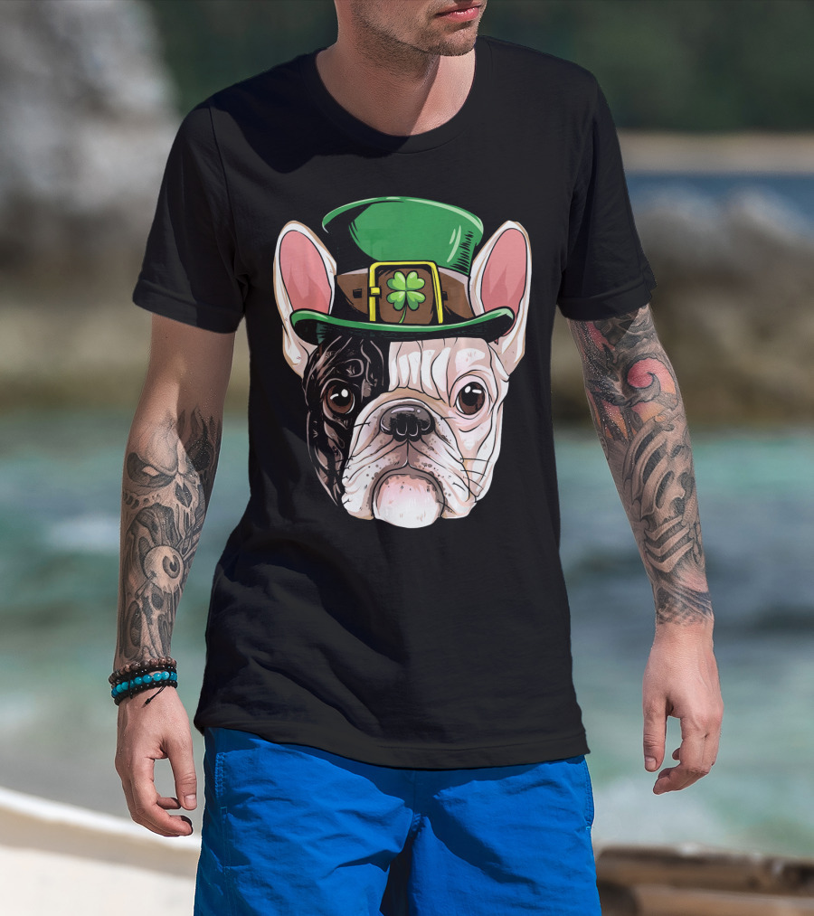 French Bulldog Leprechaun Hat St Pat Clover T-Shirt