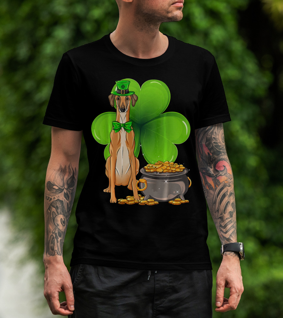 Sloughi Dog With Leprechaun Hat And Clover St Patricks Day Pot Of Gold T-Shirt