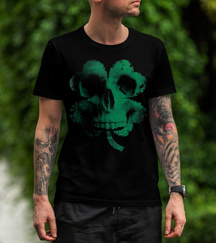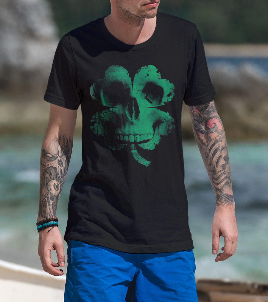 Shamrock Skull Irish Clover Skeleton T-Shirt