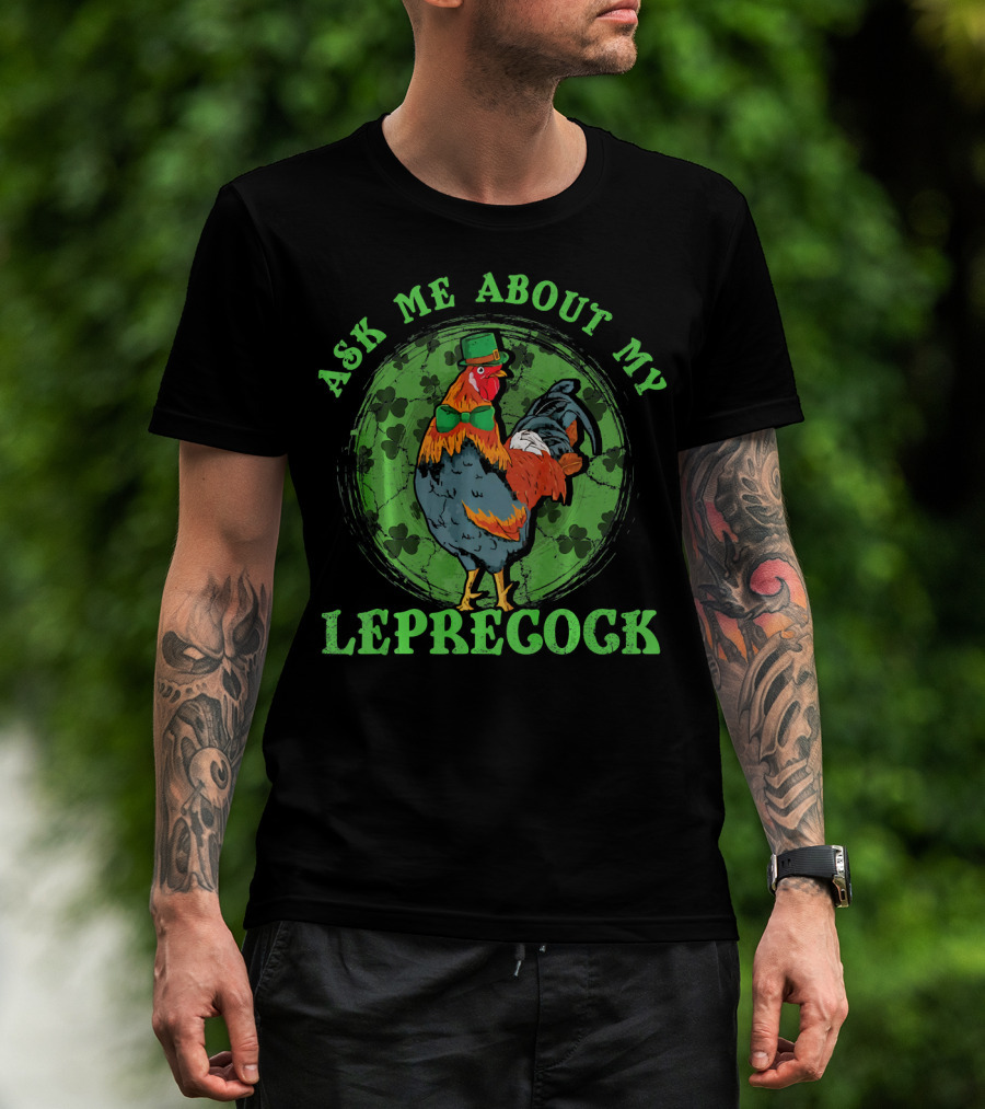 Ask Me About My Leprecock Rooster With Leprechaun Hat And Green Bow Tie T-Shirt
