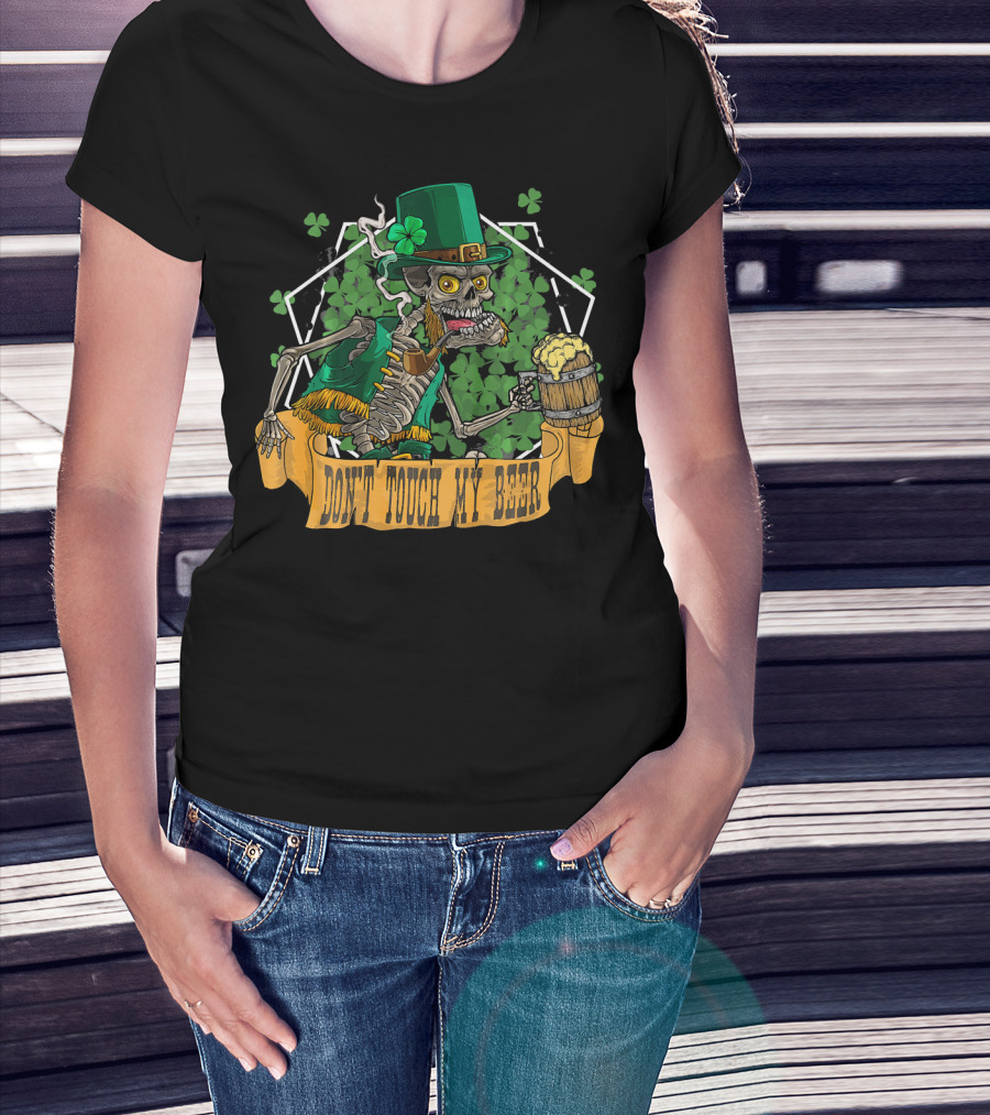 Don't Touch My Beer Drunk Leprechaun Skeleton St. Patrick's Day T-Shirt