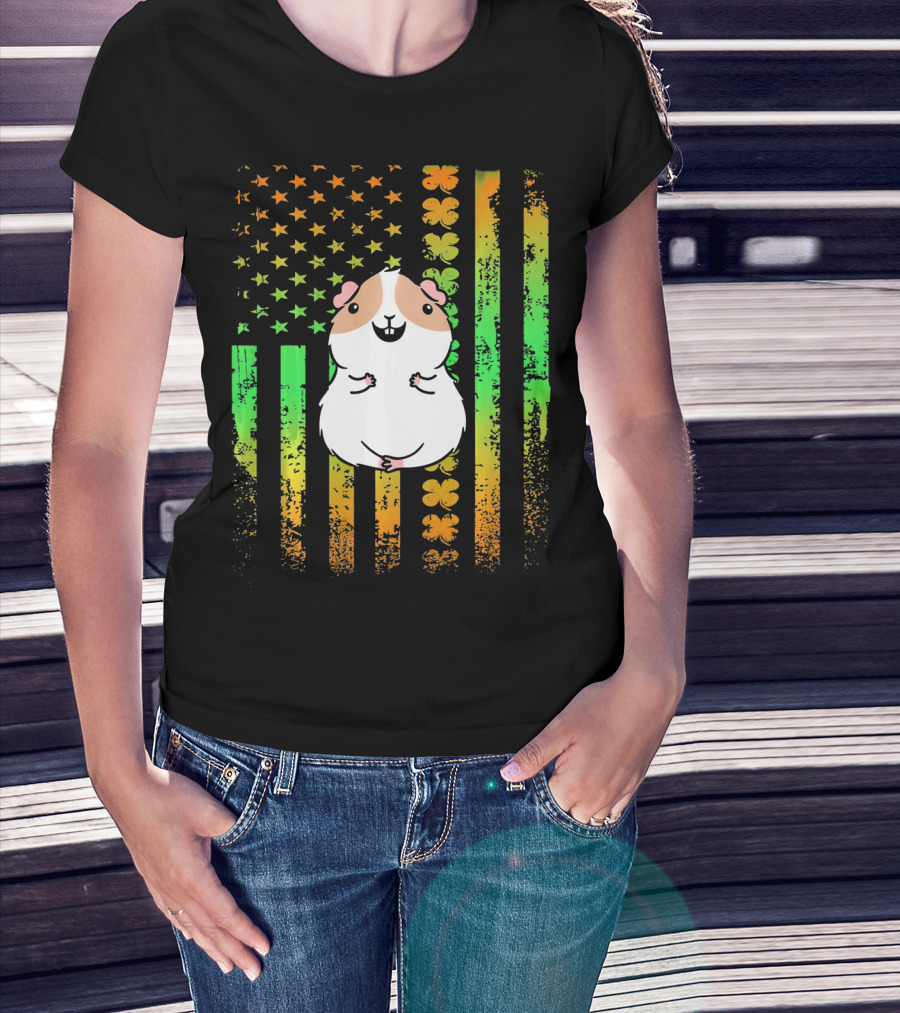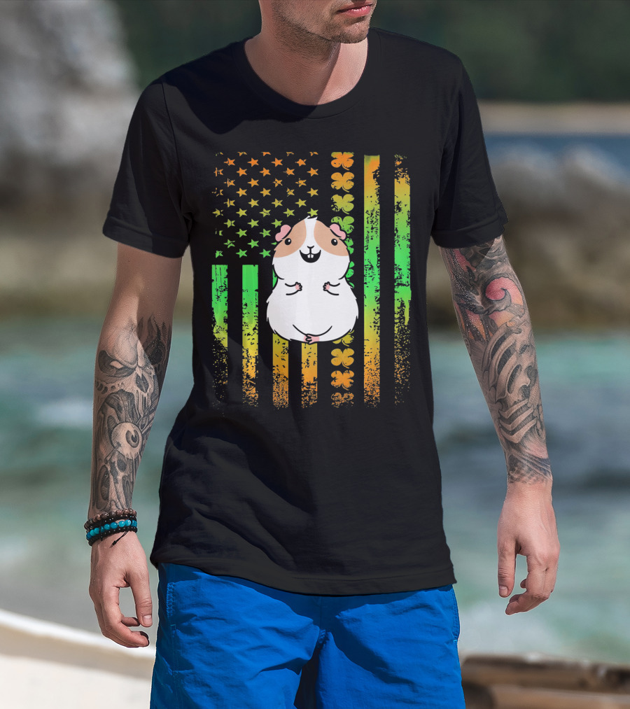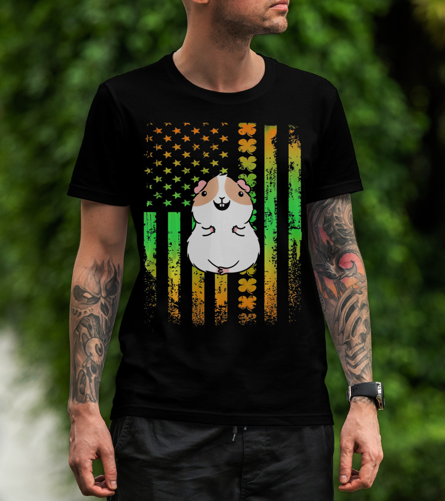 Guinea Pig American Flag Clover Theme Patriotic T-Shirt