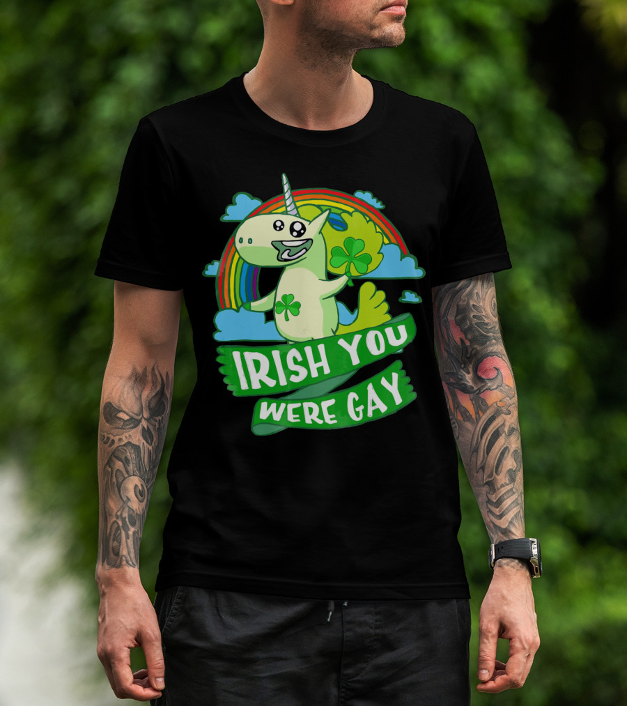 Unicorn Irish You Were Gay Rainbow Shamrock Clouds T-Shirt