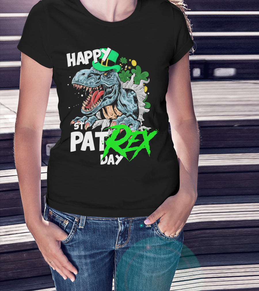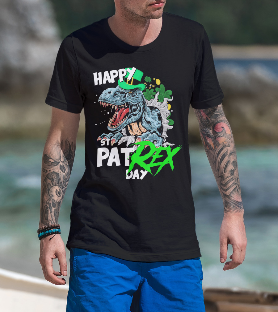 St Patricks Day Rex Happy Pat With Leprechaun Hat And Shamrocks T-Shirt