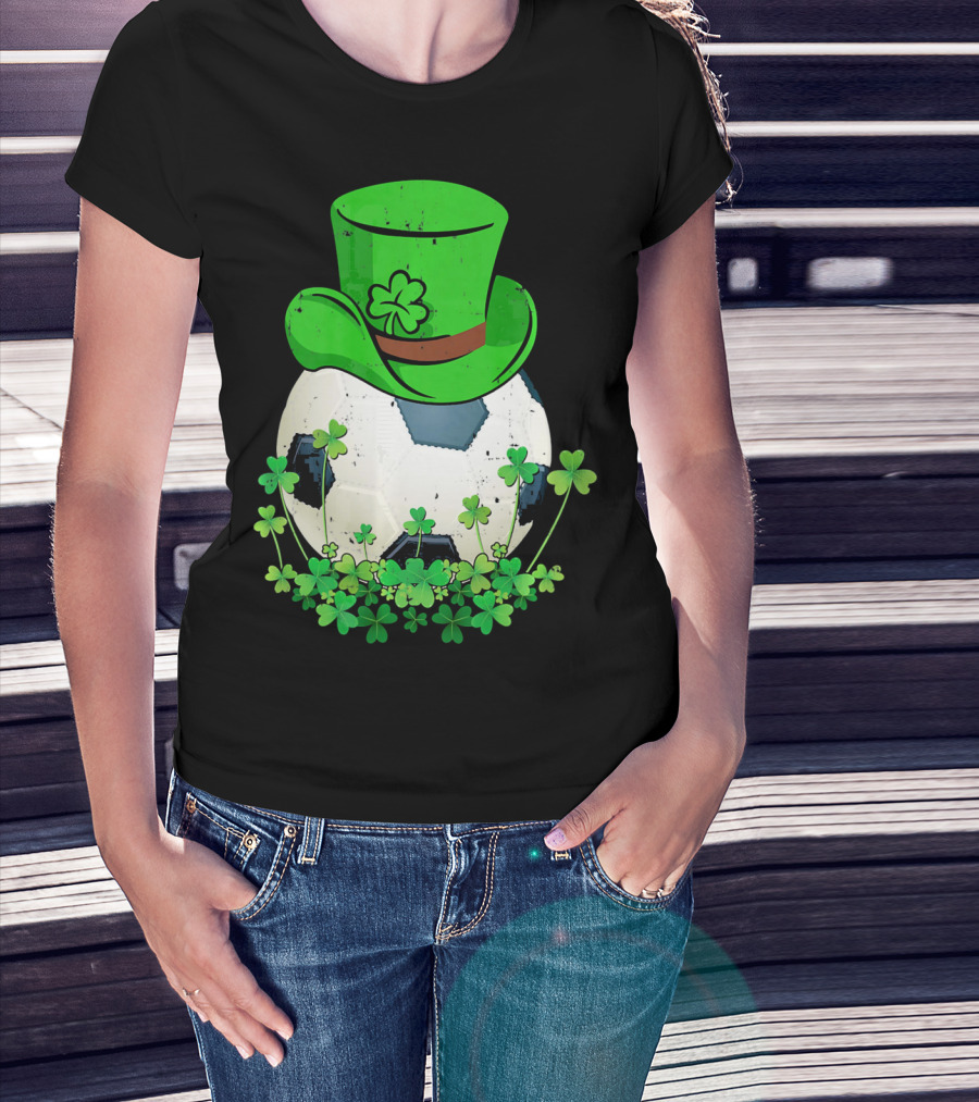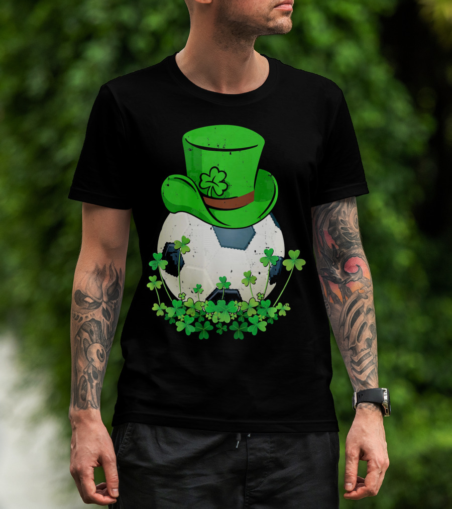Shamrock Soccer Ball With Leprechaun Hat St Patricks Day T-Shirt