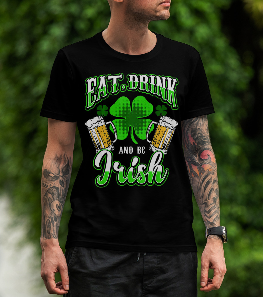 EAT DRINK AND BE IRISH Clover Beer Mugs T-Shirt