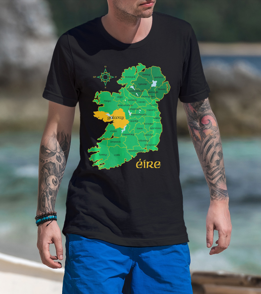 Galway Éire Irish County Map With Compass Rose T-Shirt