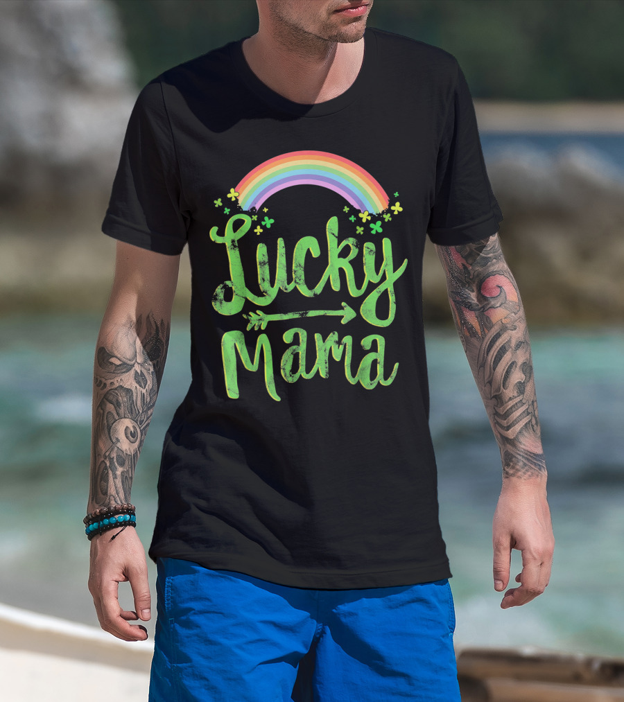 Lucky Mama Rainbow With Shamrocks And Arrow T-Shirt