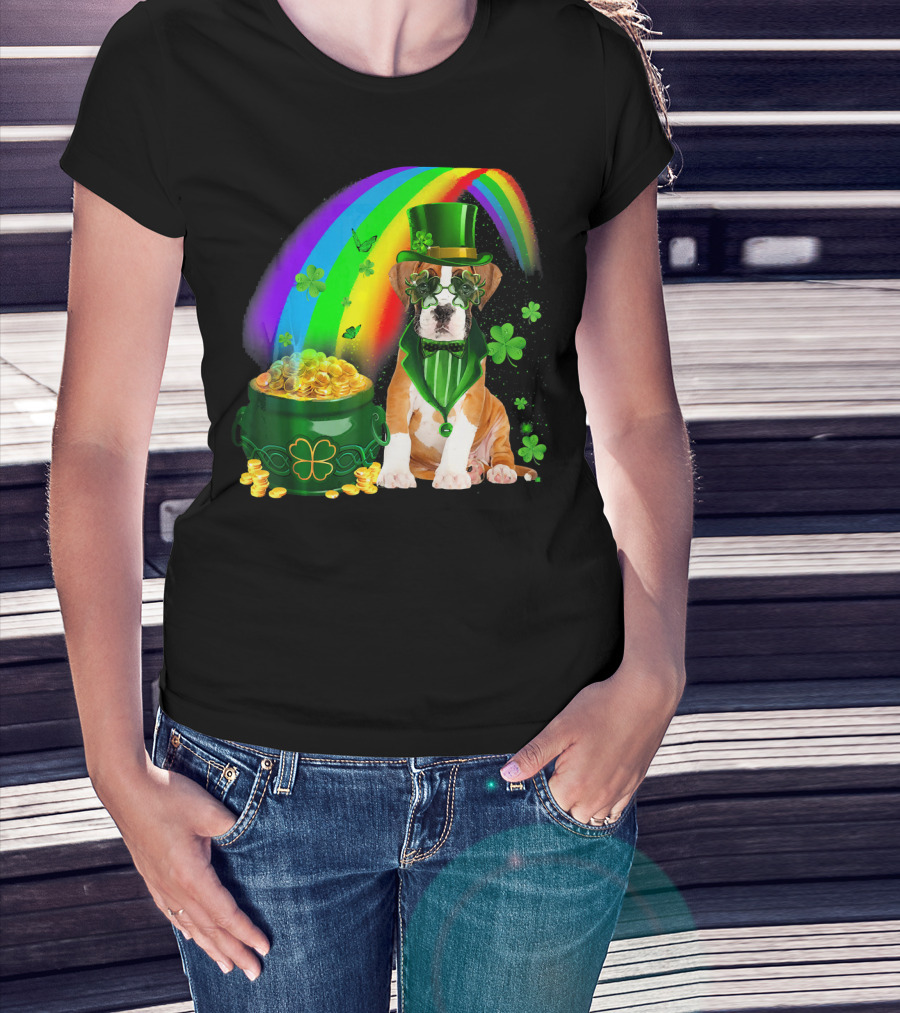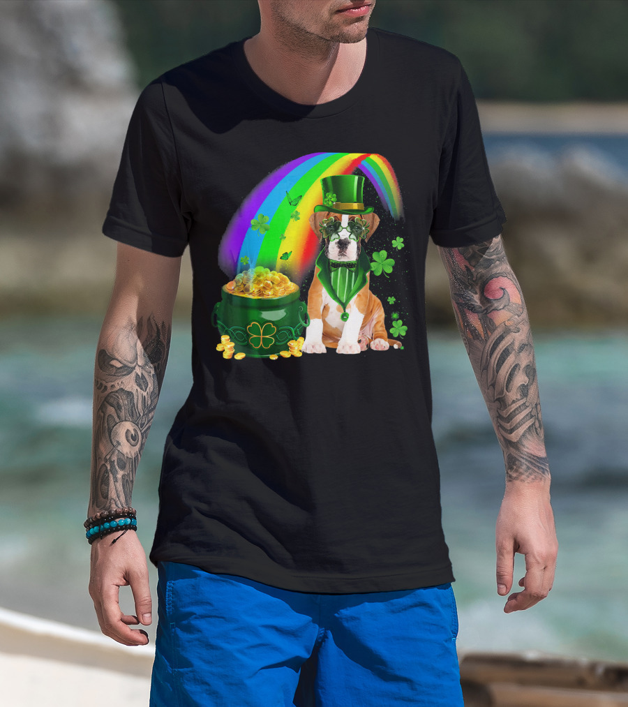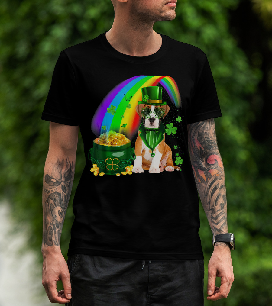 Boxer Dog Irish Leprechaun Coin Rainbow Clover Saint Patrick's Day T-Shirt