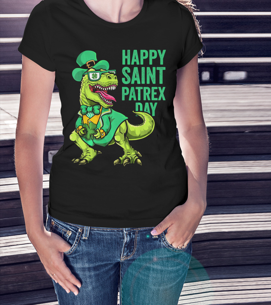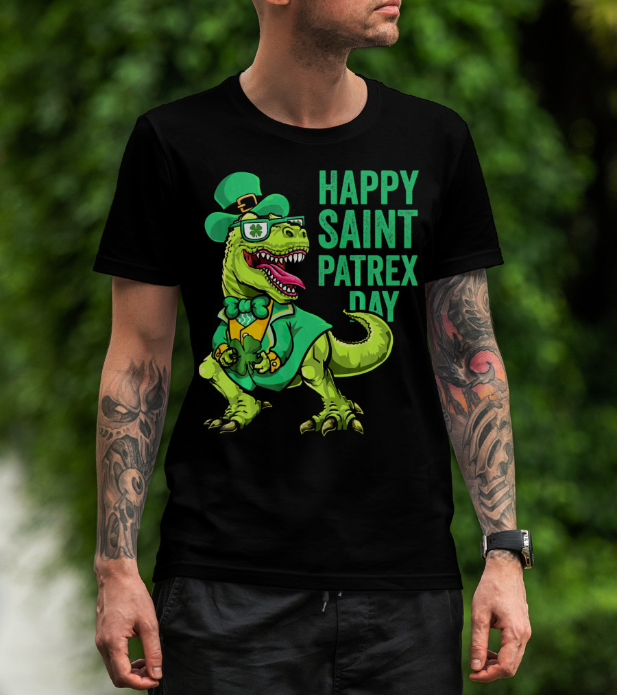 Happy Saint Patrex Day Irish Leprechaun Dinosaur T-Shirt