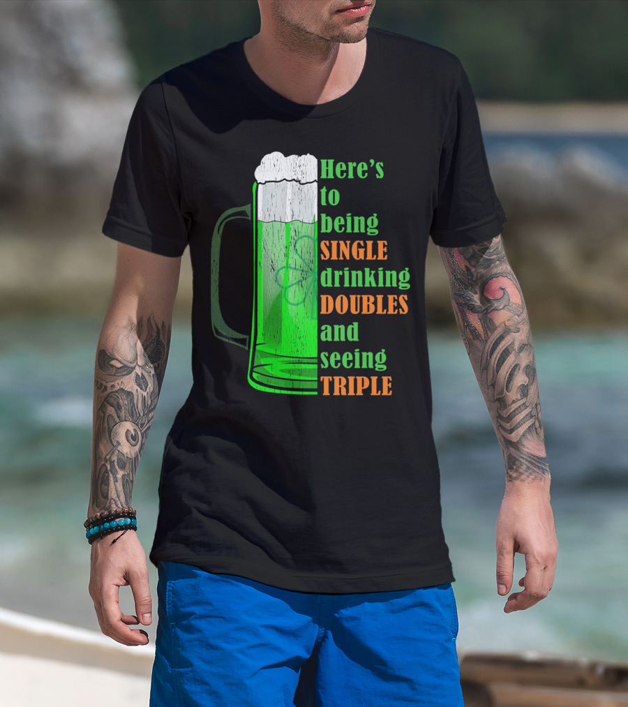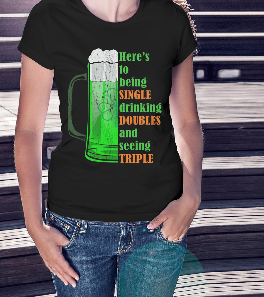 Here's To Being Single Drinking Doubles And Seeing Triple Irish St. Paddys T-Shirt