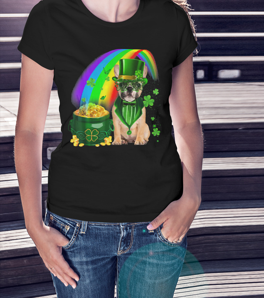 French Bulldog Irish Leprechaun With Pot Of Gold And Shamrocks T-Shirt