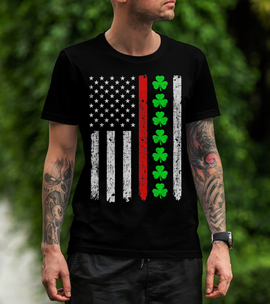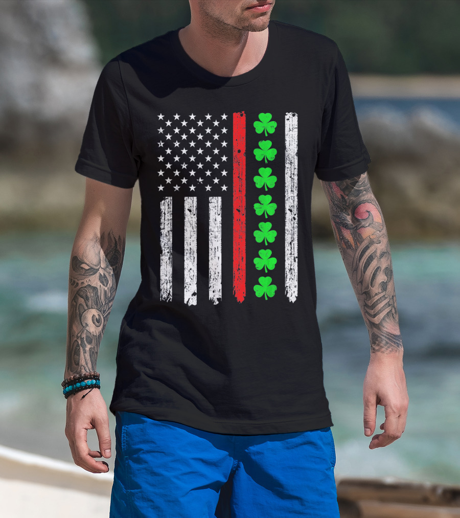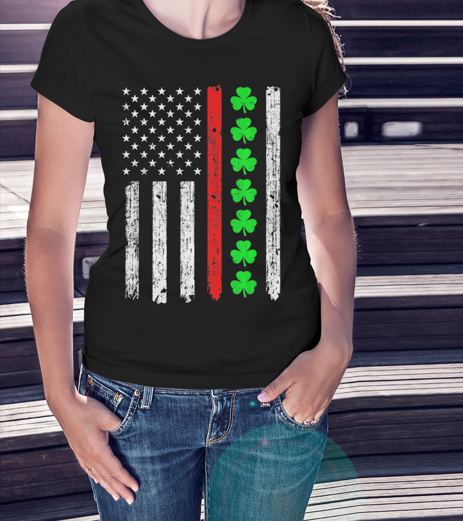 American Flag Thin Red Line Shamrock Irish St Patricks T-Shirt
