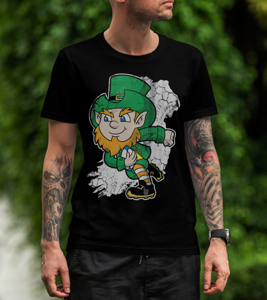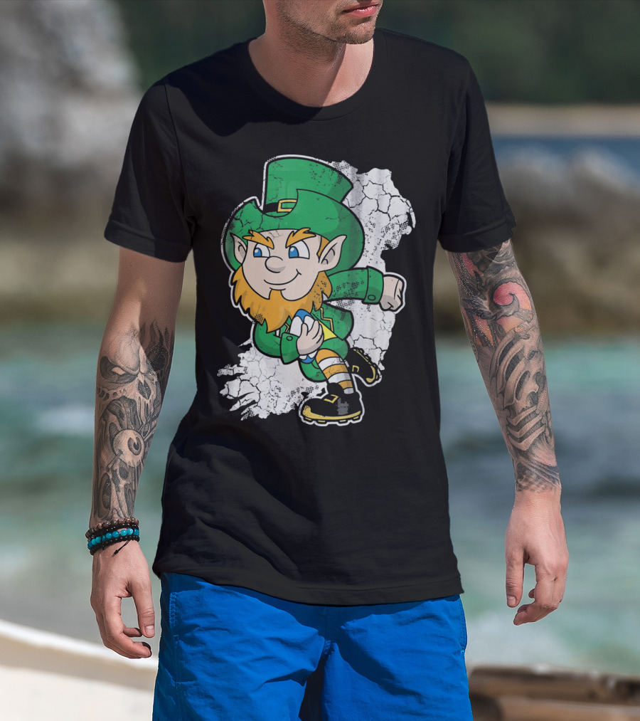 Irish Rugby Leprechaun With Rugby Ball On Cracked Background T-Shirt