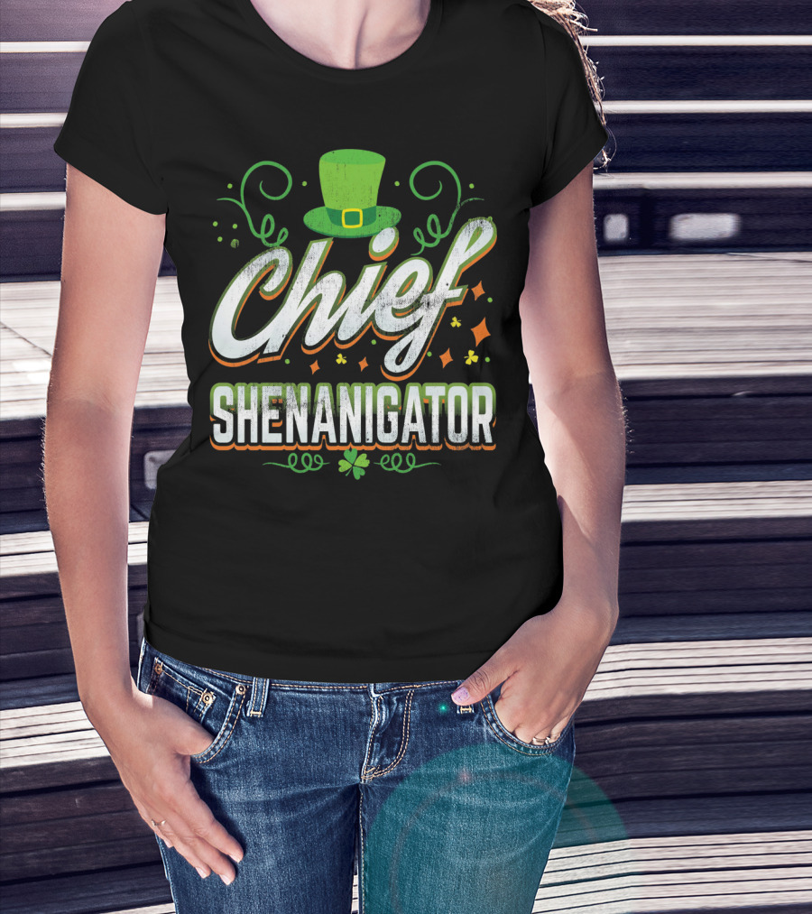 Chief Shenanigator St. Patrick's Day Hat And Clover T-Shirt