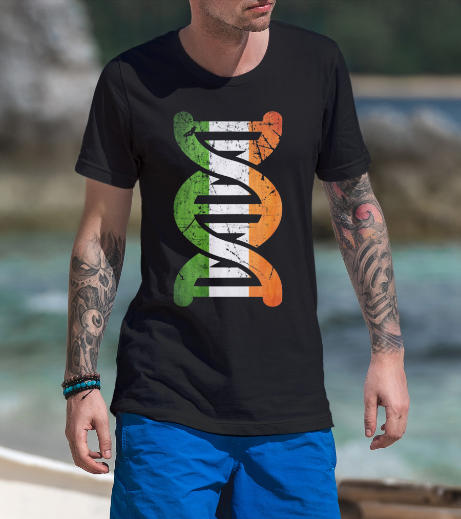 The Irish Flag DNA Symbol Heritage T-shirt is designed for everyday wear and a consistent fit. Fabric is pre-shrunk ring-spun cotton with durable stitching. See the size chart below for exact measurements.