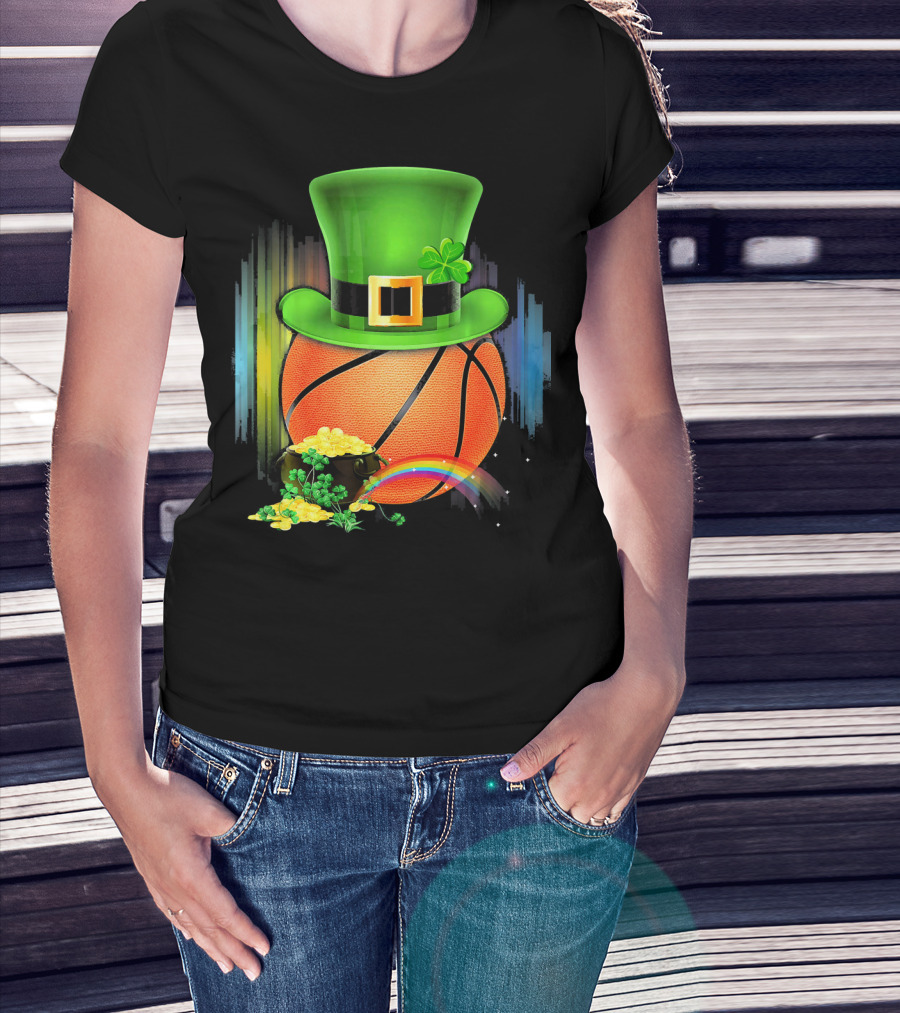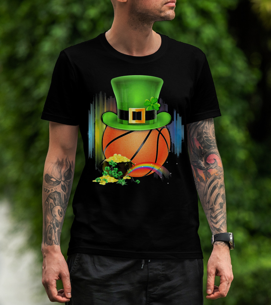 Basketball Leprechaun Hat Coin Rainbow Saint Patrick T-Shirt