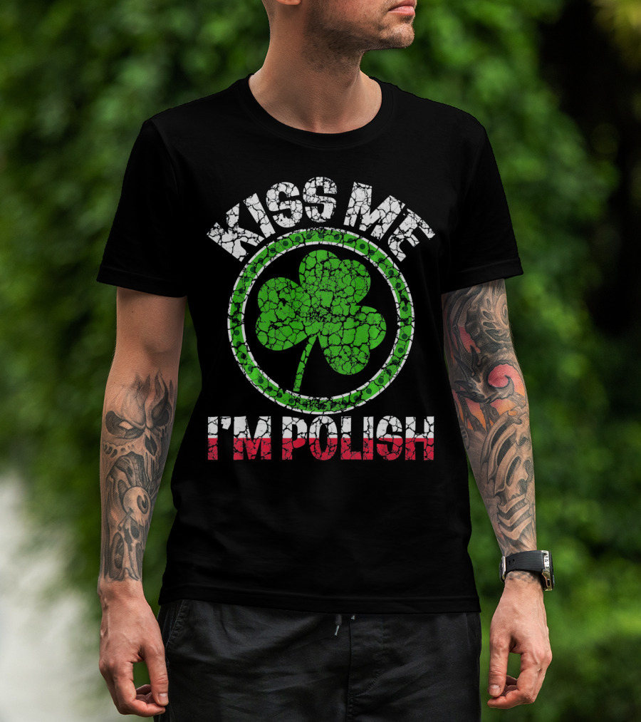 Kiss Me I'm Polish Clover Circle Crackle Texture T-Shirt