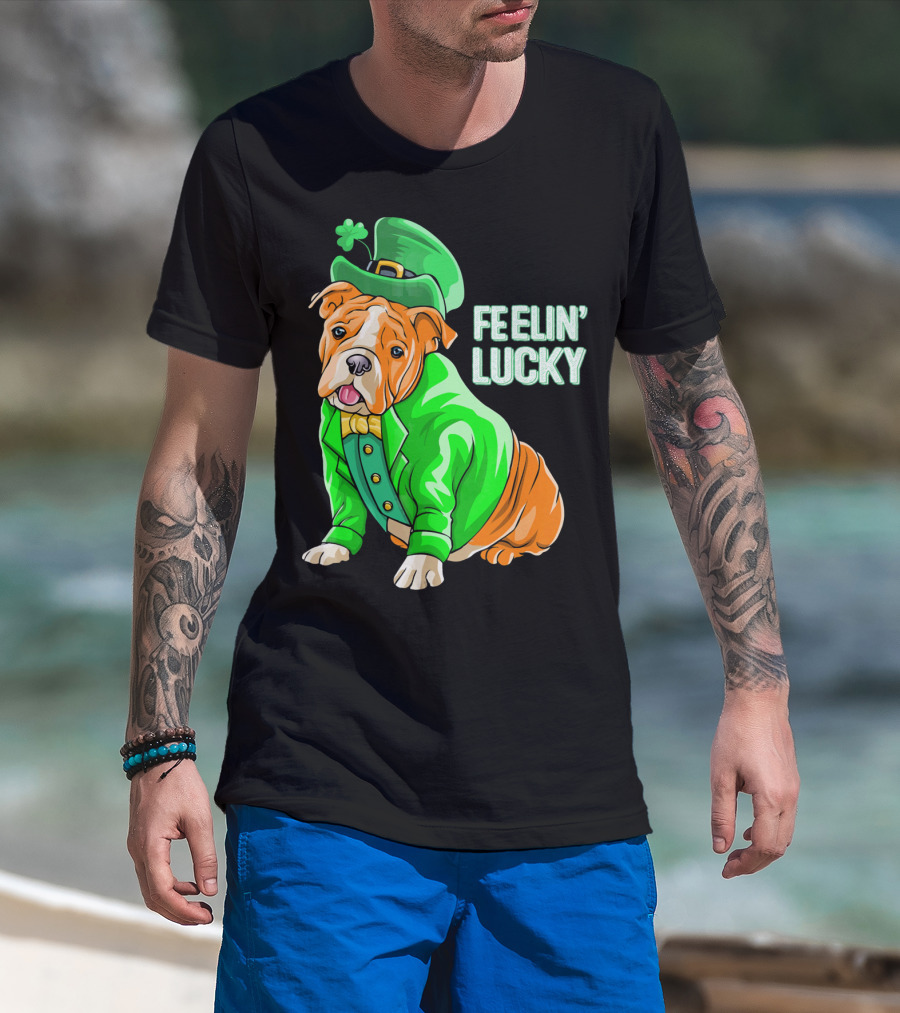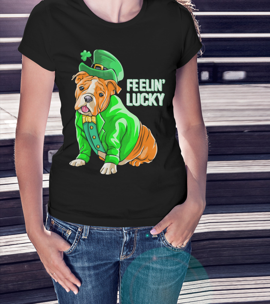 Feelin' Lucky Bulldog In Green Leprechaun T-Shirt