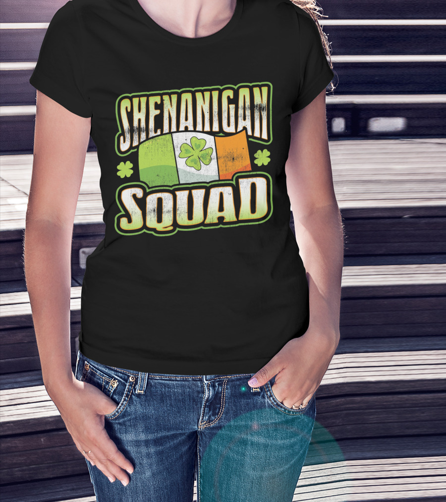 Shenanigan Squad Irish Flag Clover Retro T-Shirt