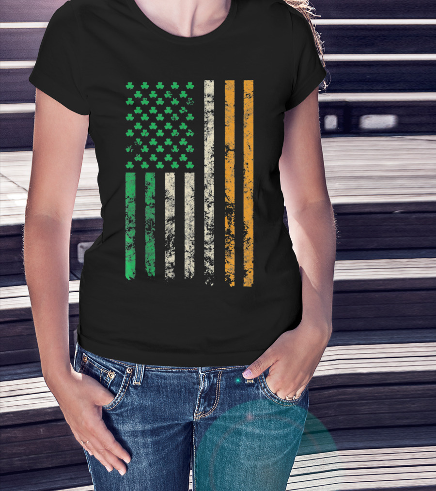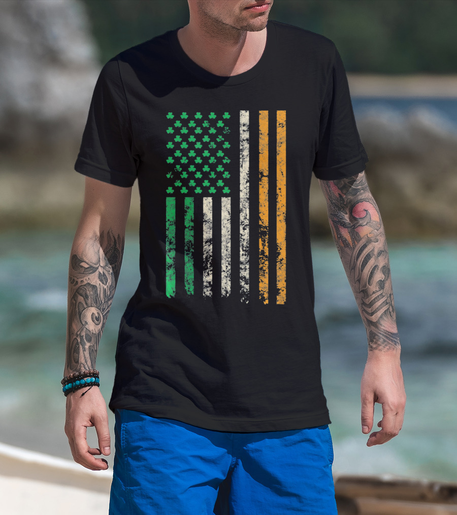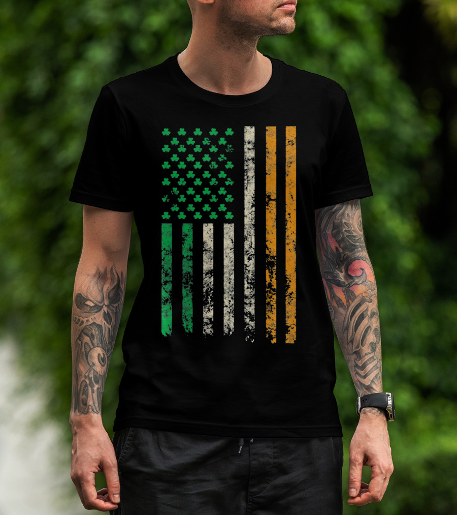 American Ireland Flag Shamrock Symbolic Fusion T-Shirt