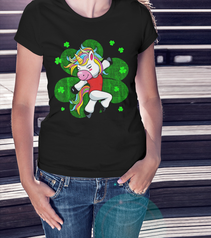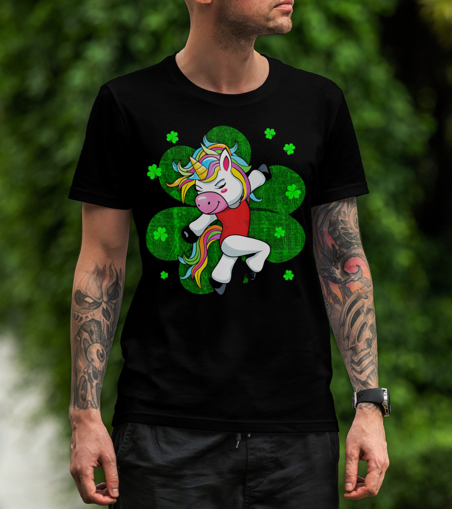 Youthful Rainbow Unicorn Gymnastics With Irish Shamrocks T-Shirt