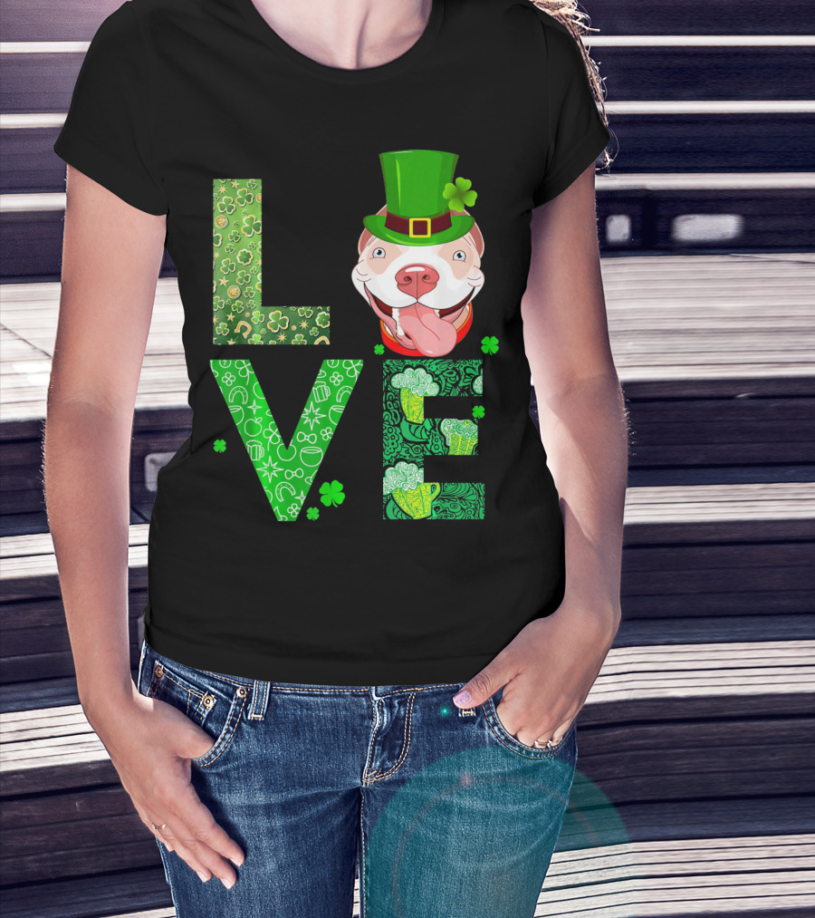 Love Pitbull St Patricks Day Green Shamrock Hat T-Shirt