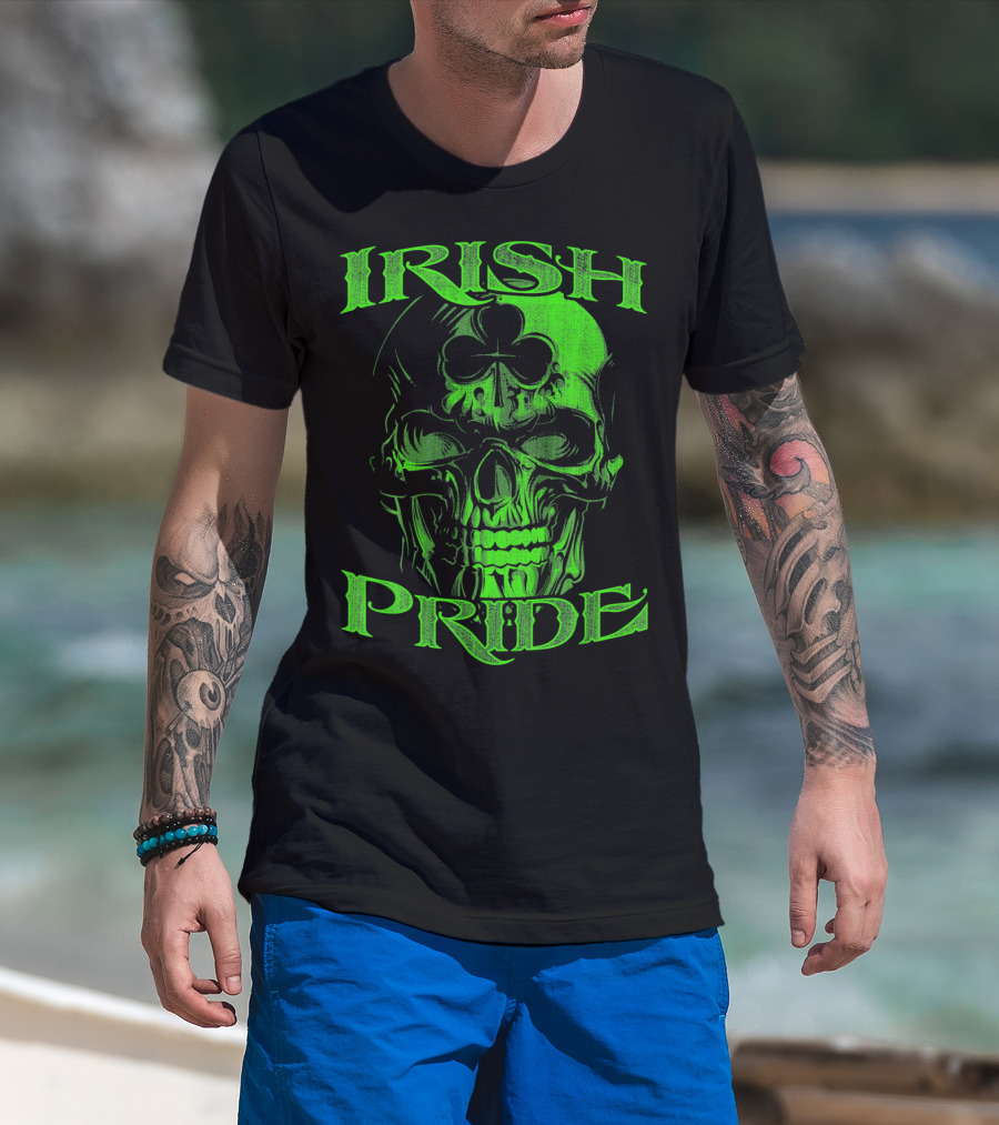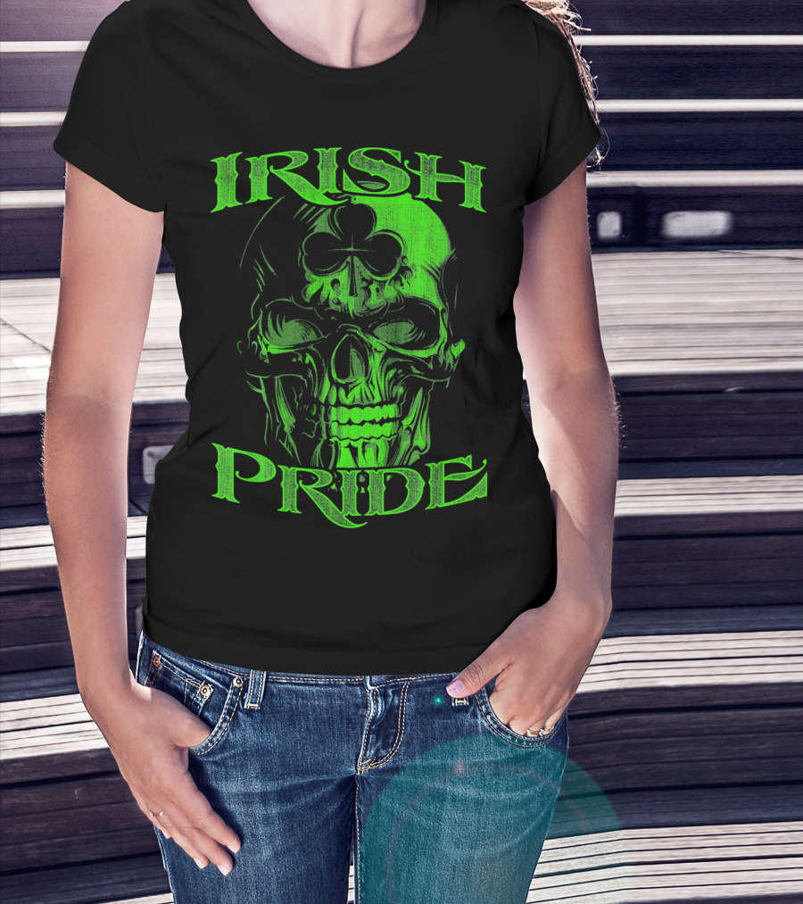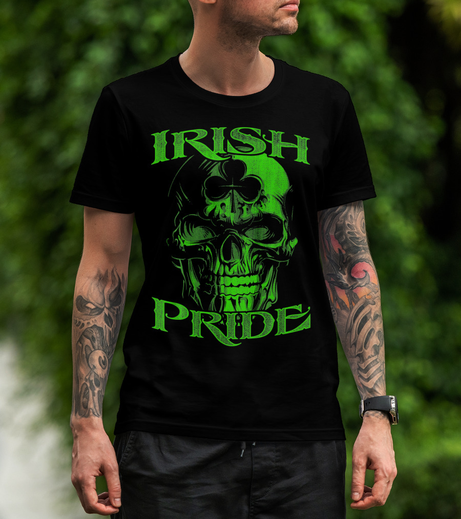 The Irish Pride Shamrock Skull T-shirt is designed for everyday wear and a consistent fit. Fabric is pre-shrunk ring-spun cotton with durable stitching. See the size chart below for exact measurements.