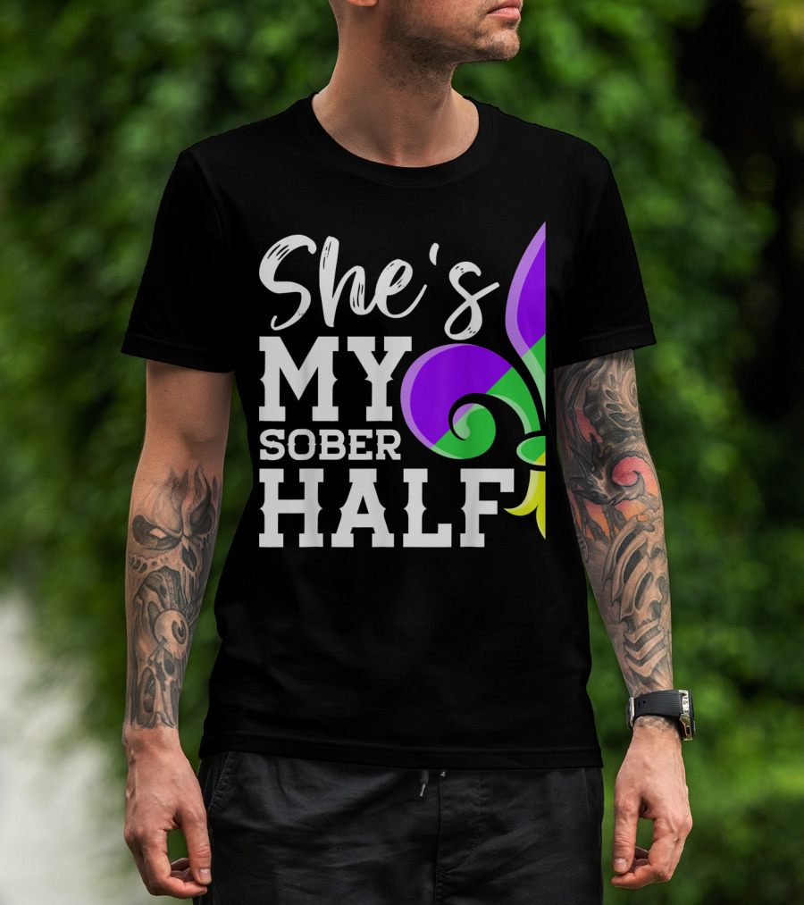 Couple Matching Mardi Gras She's My Sober Half Fleur-de-lis T-Shirt