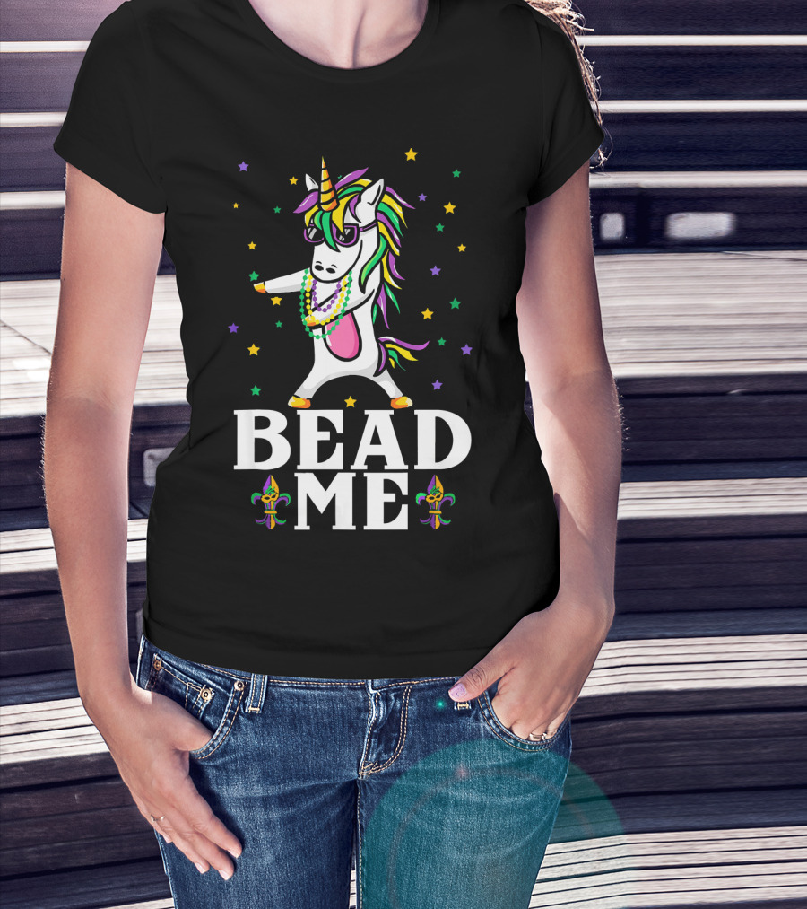 Mardi Gras Unicorn Dabbing Bead Me Stars And Fleur-de-Lis T-Shirt