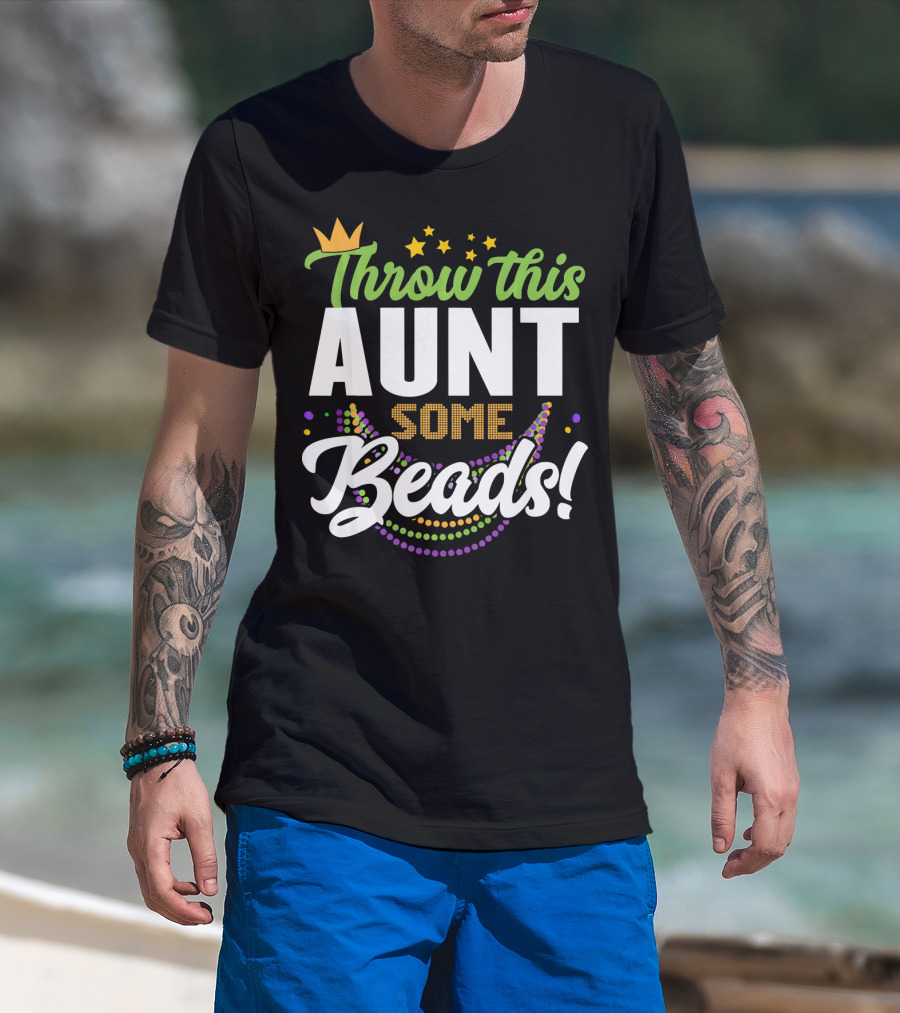 Throw This Aunt Some Beads Mardi Gras Crown And Stars T-Shirt