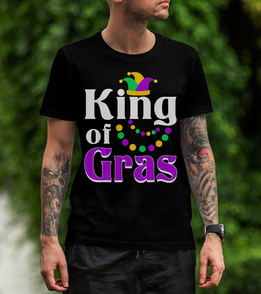 King Of Gras Funny Mardi Gras Couples Co Jokester Hat And Beads T-Shirt