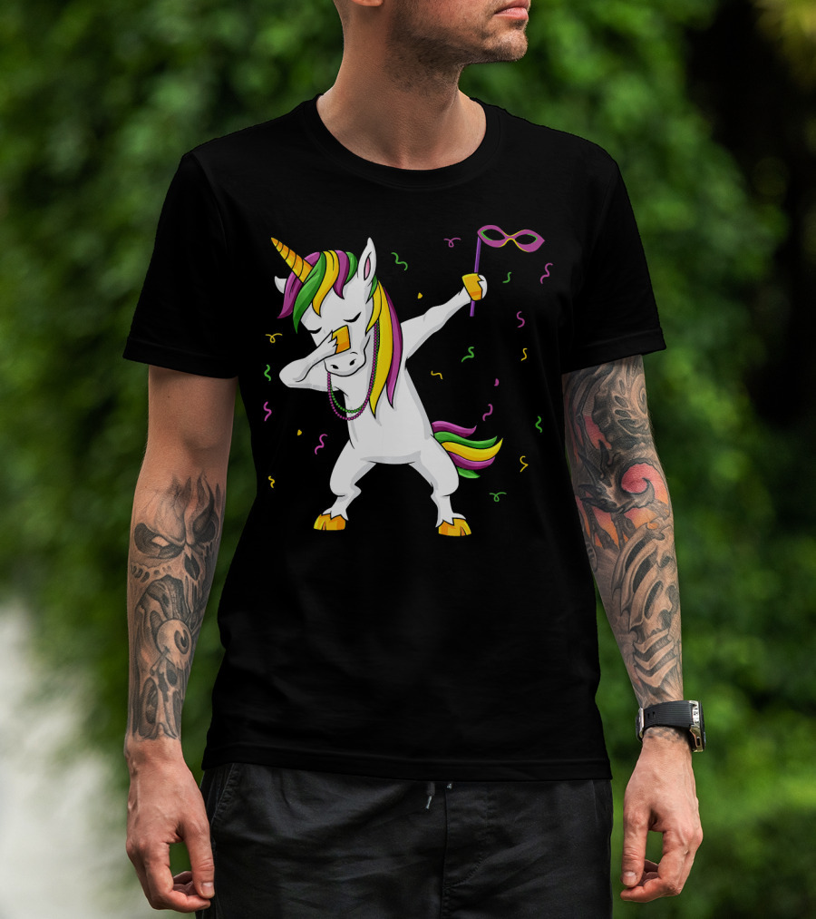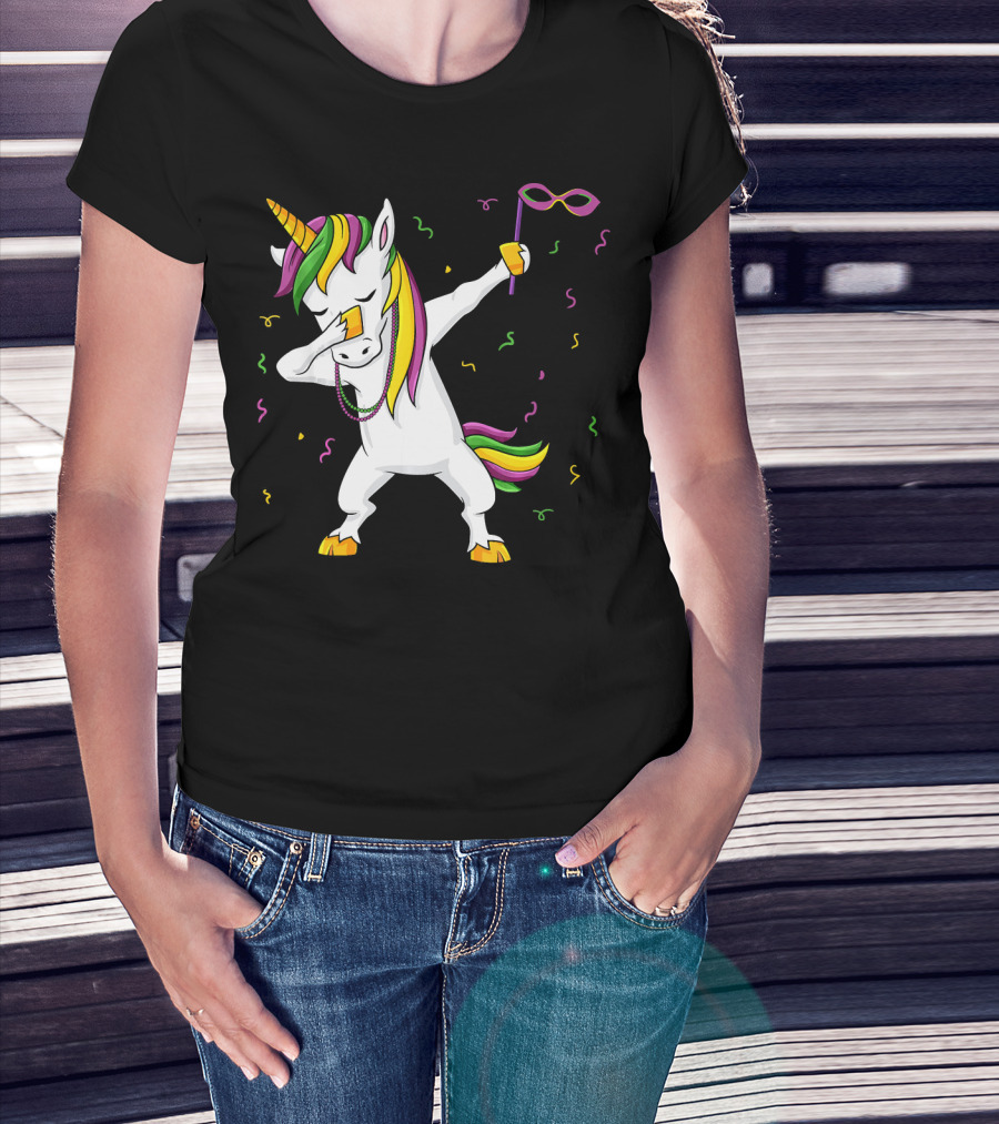 Dabbing Unicorn Mardi Gras Mask Colorful Fun Girls T-Shirt