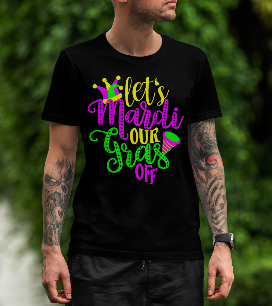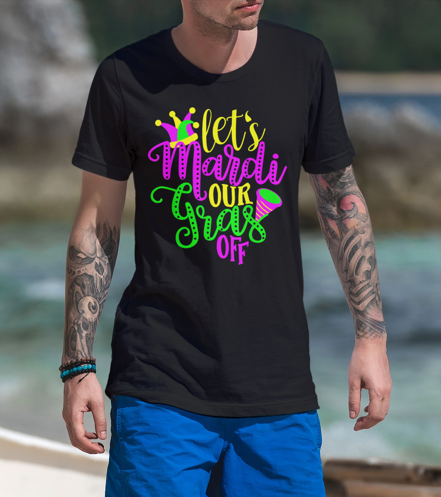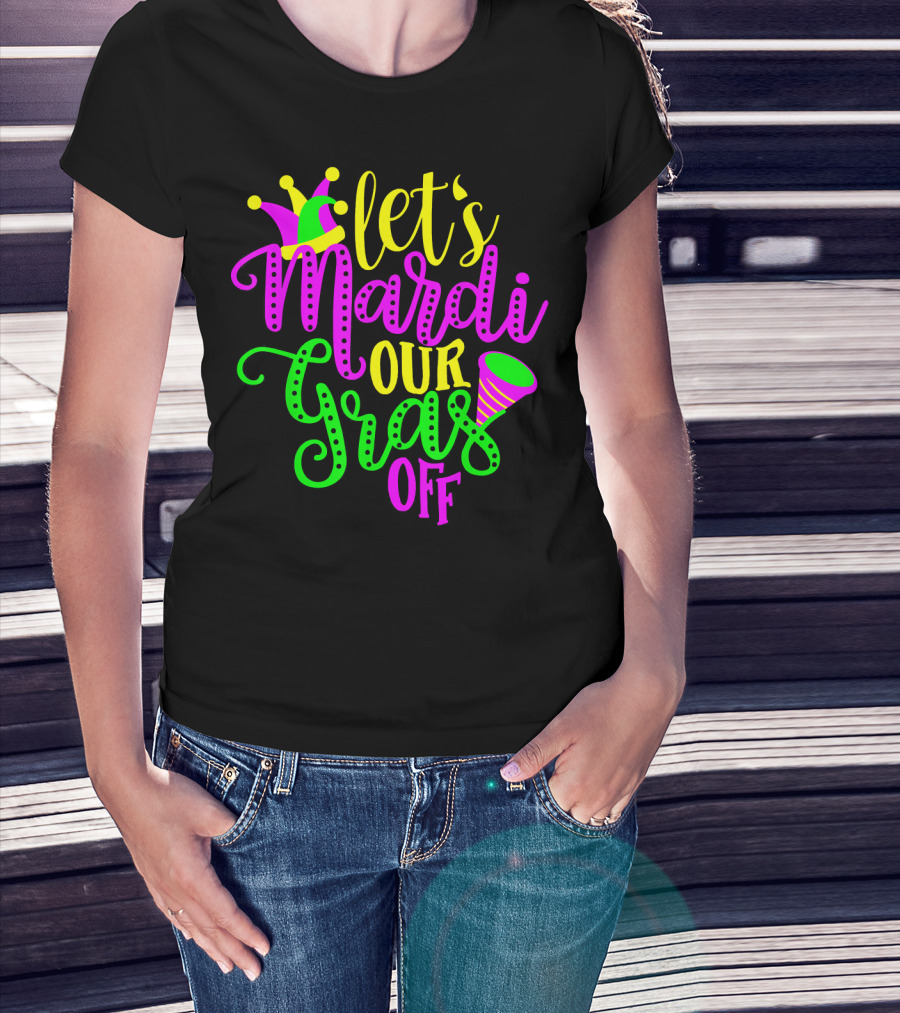 Let's Mardi Our Gras Off Jester Hat Horn Mardi Gras Parade T-Shirt