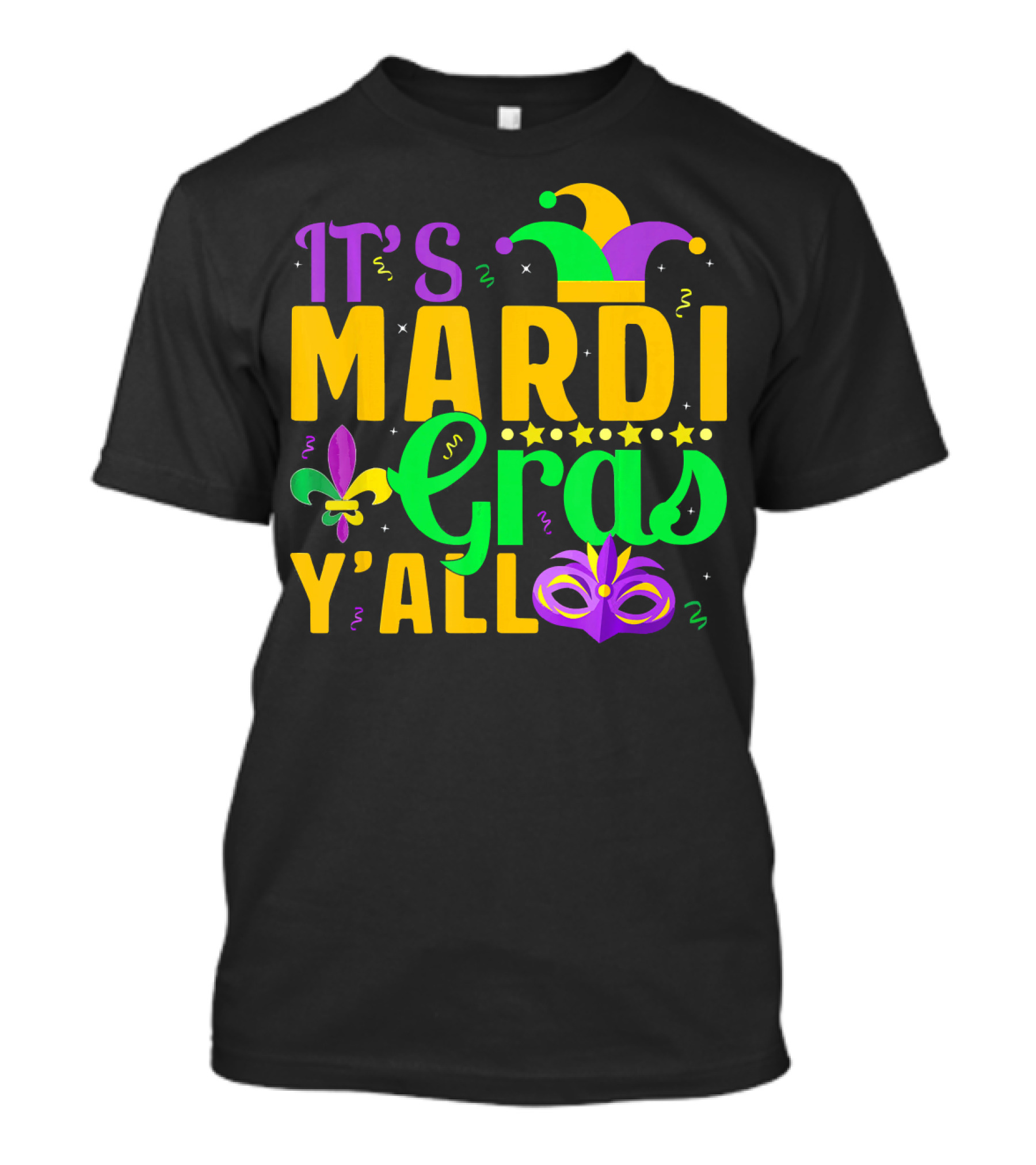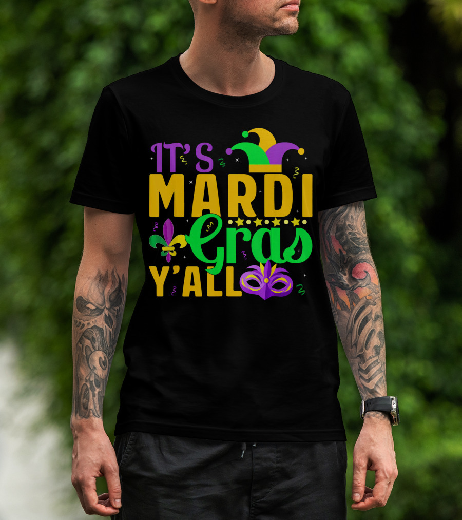 It's Mardi Gras Y'all Mardi Gras Jester Hat Fleur-de-Lis Mask T-Shirt
