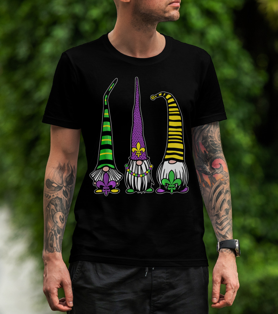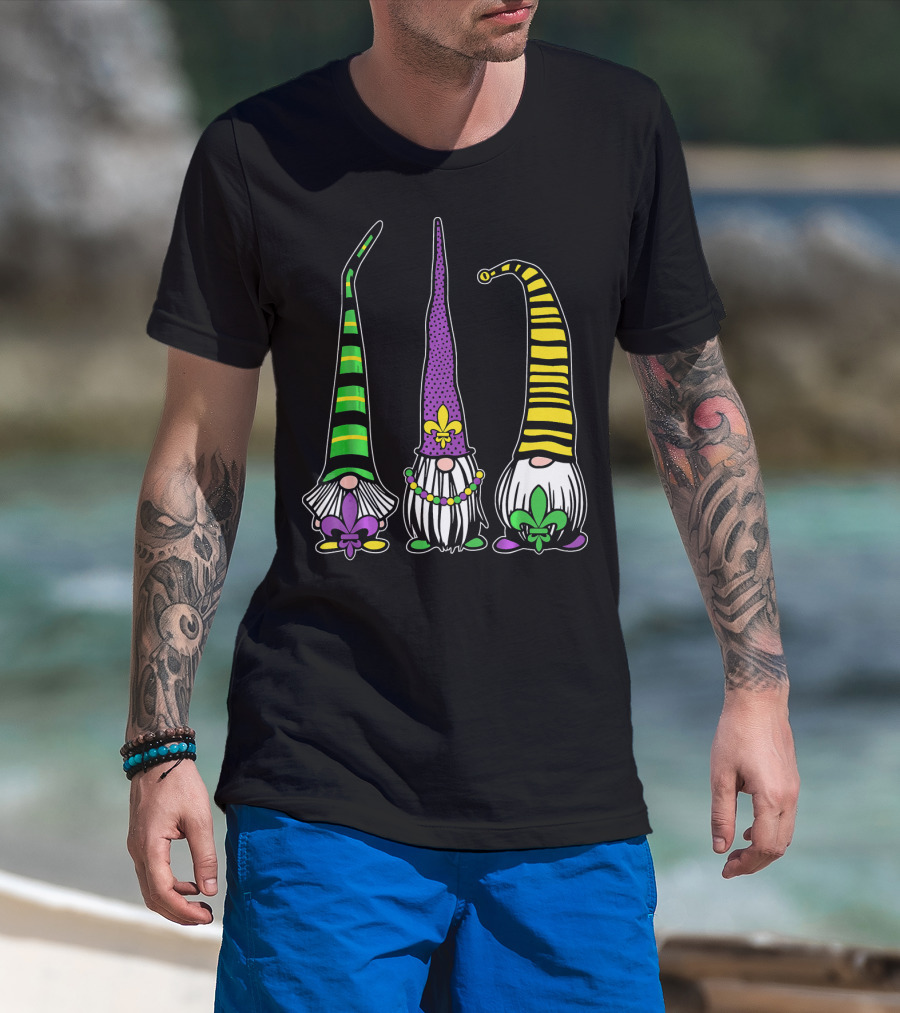 Cute Gnomes Mardi Gras Tuesday Gnome Bea Festival Fleur De Lis T-Shirt