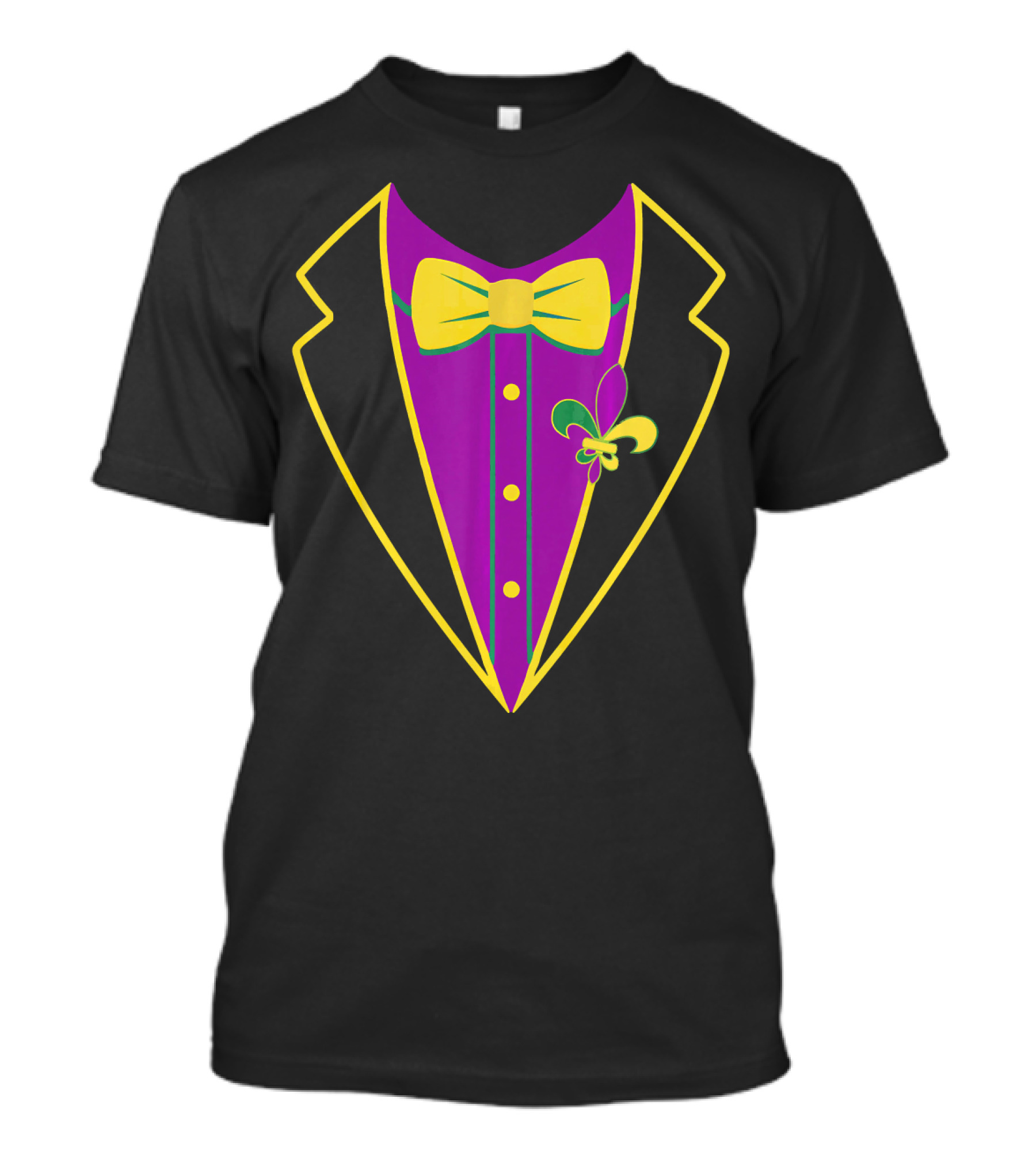 Mardi Gras Costume Carnival Parade Fleur-de-Lis Tuxedo Bow Tie T-Shirt