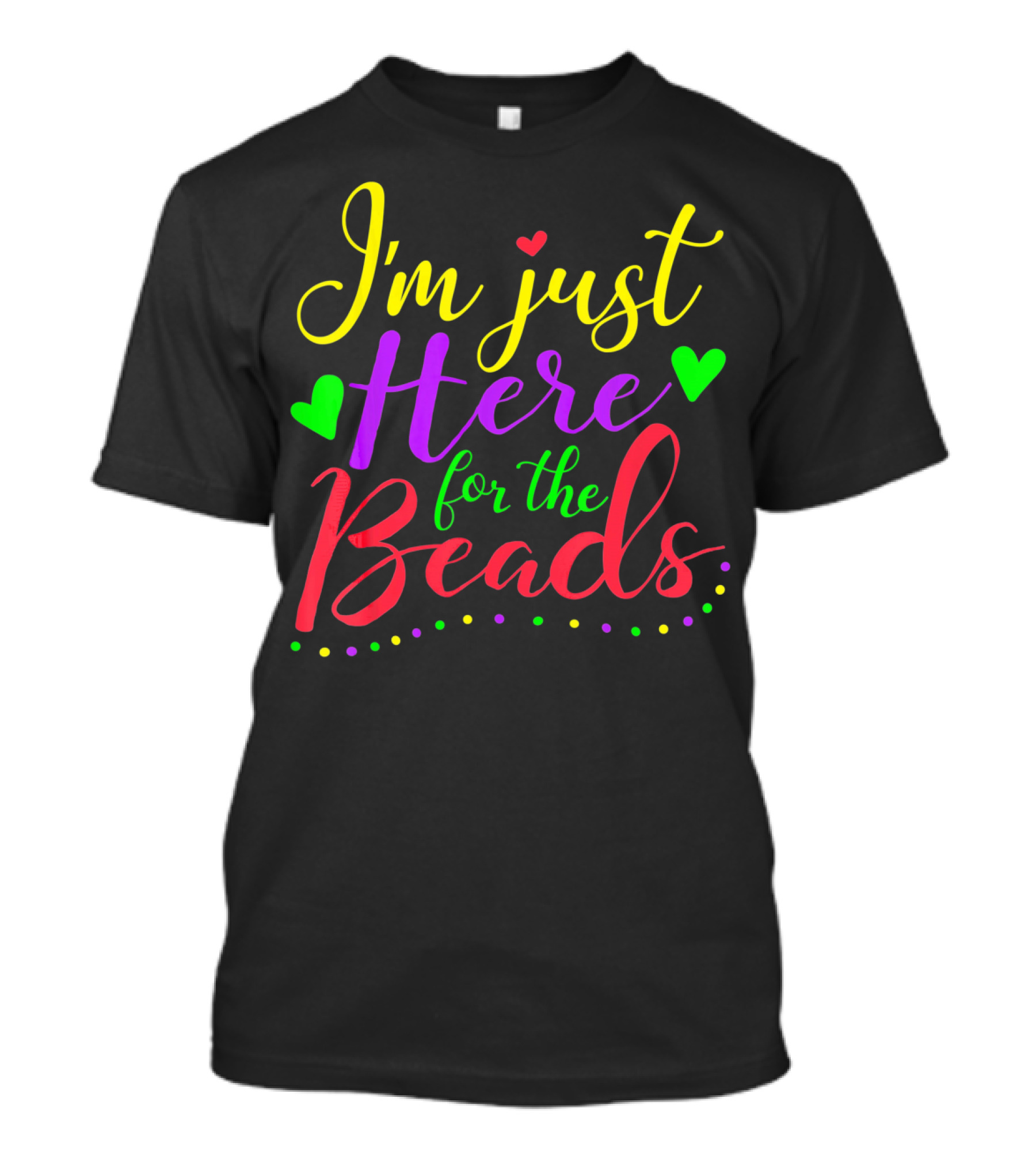 The I'm Just Here for the Beads Mardi Gras New Orleans Par T-shirt is designed for everyday wear and a consistent fit. Fabric is pre-shrunk ring-spun cotton with durable stitching. See the size chart below for exact measurements.