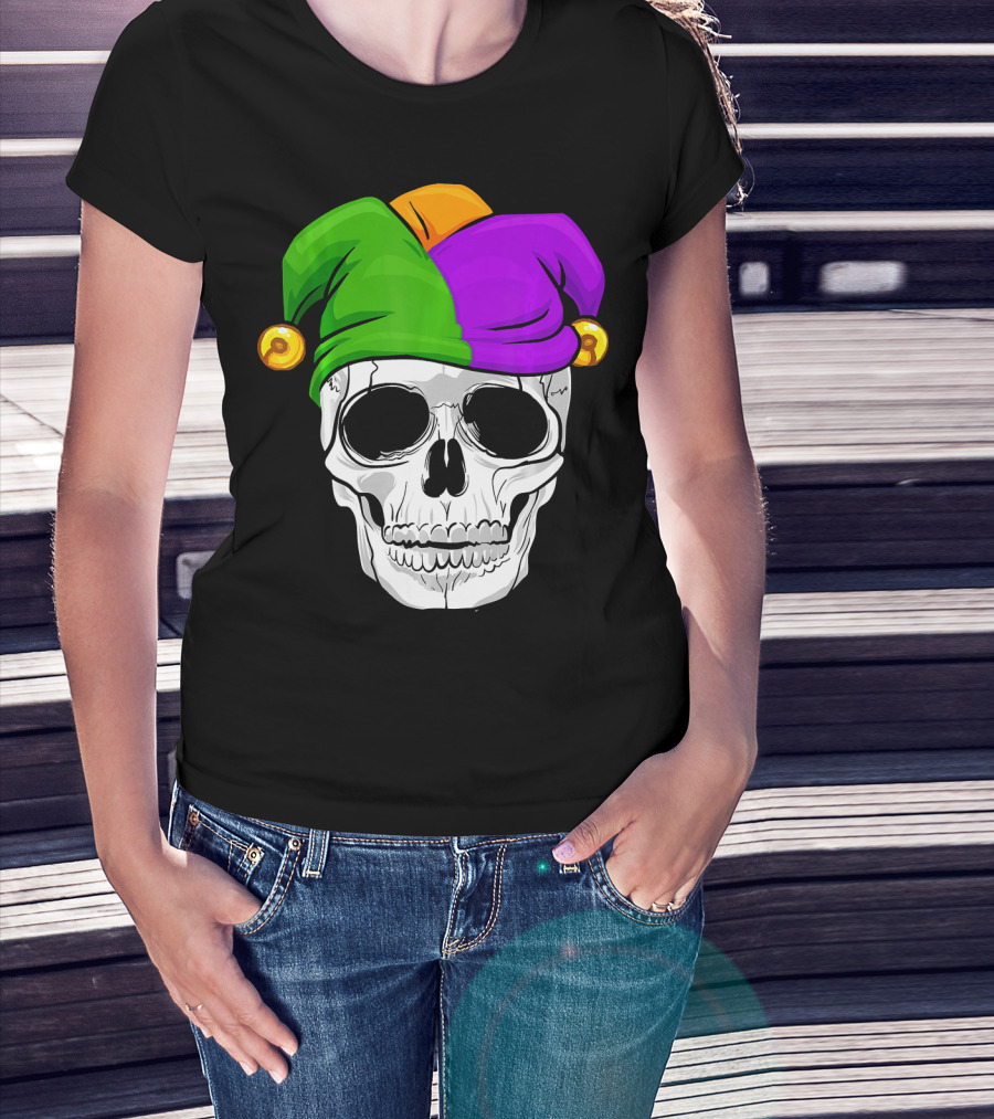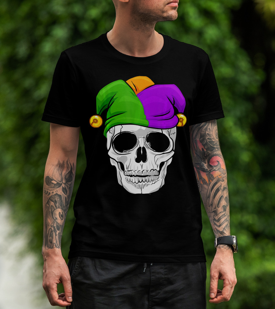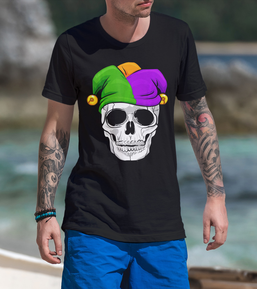 Mardi Gras New Orleans Skull With Colorful Jester Hat T-Shirt