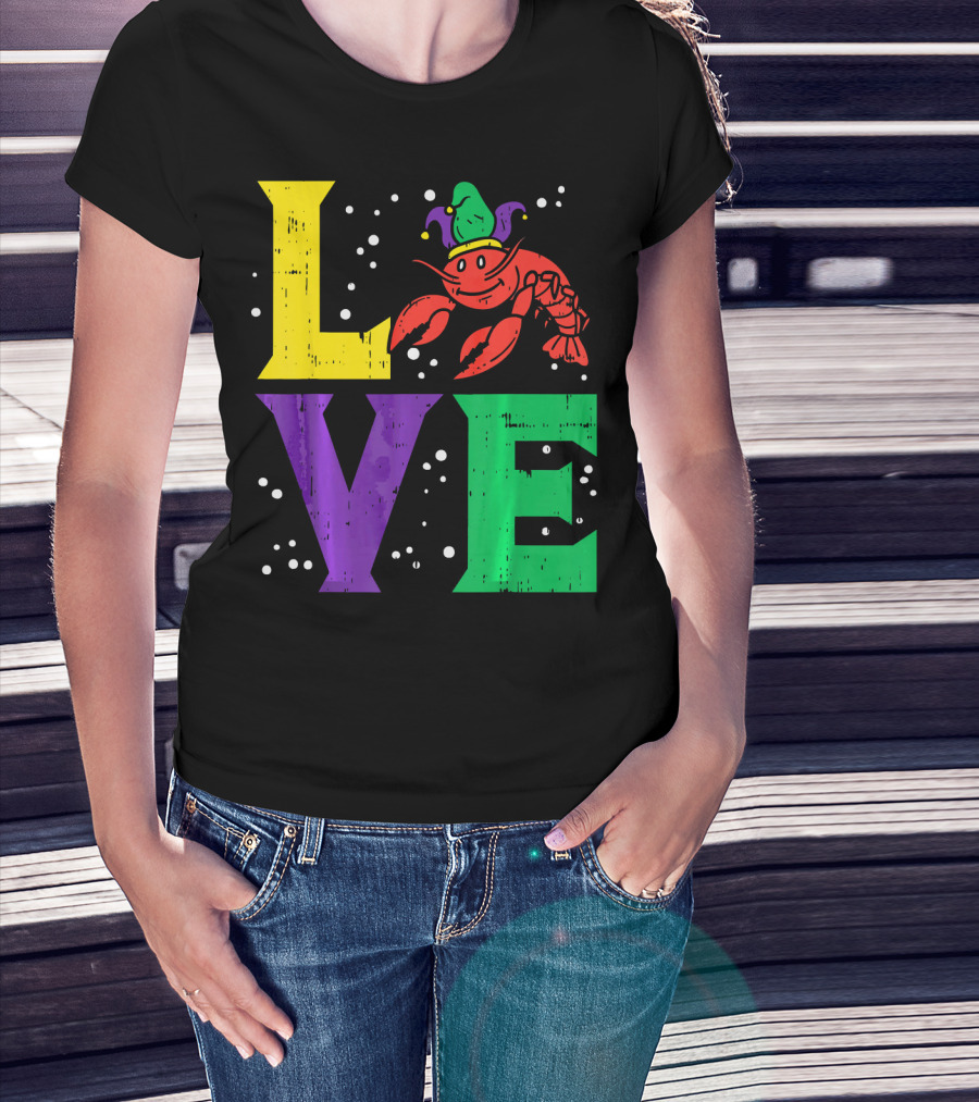 Love Crawfish Jester Hat Mardi Gras T-Shirt