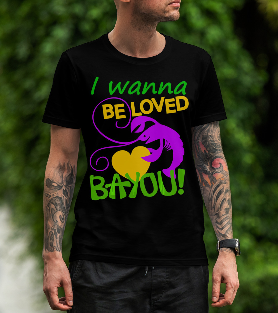 I Wanna Be Loved Bayou Crawfish Heart Mardi Colors T-Shirt