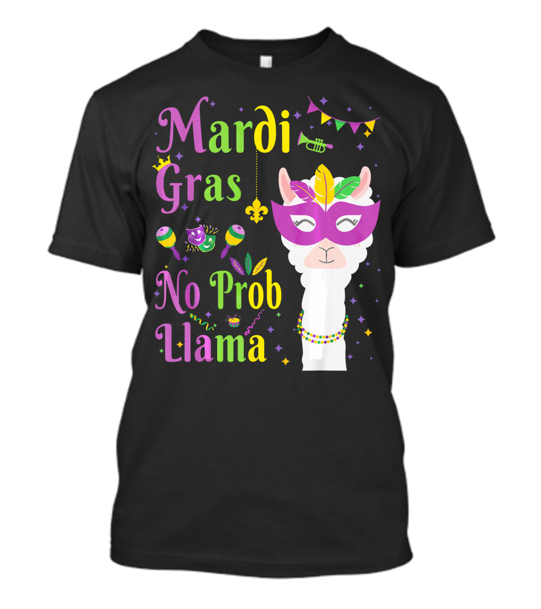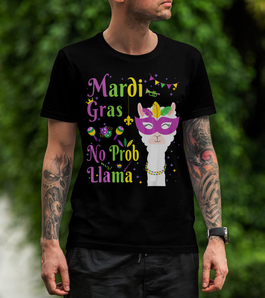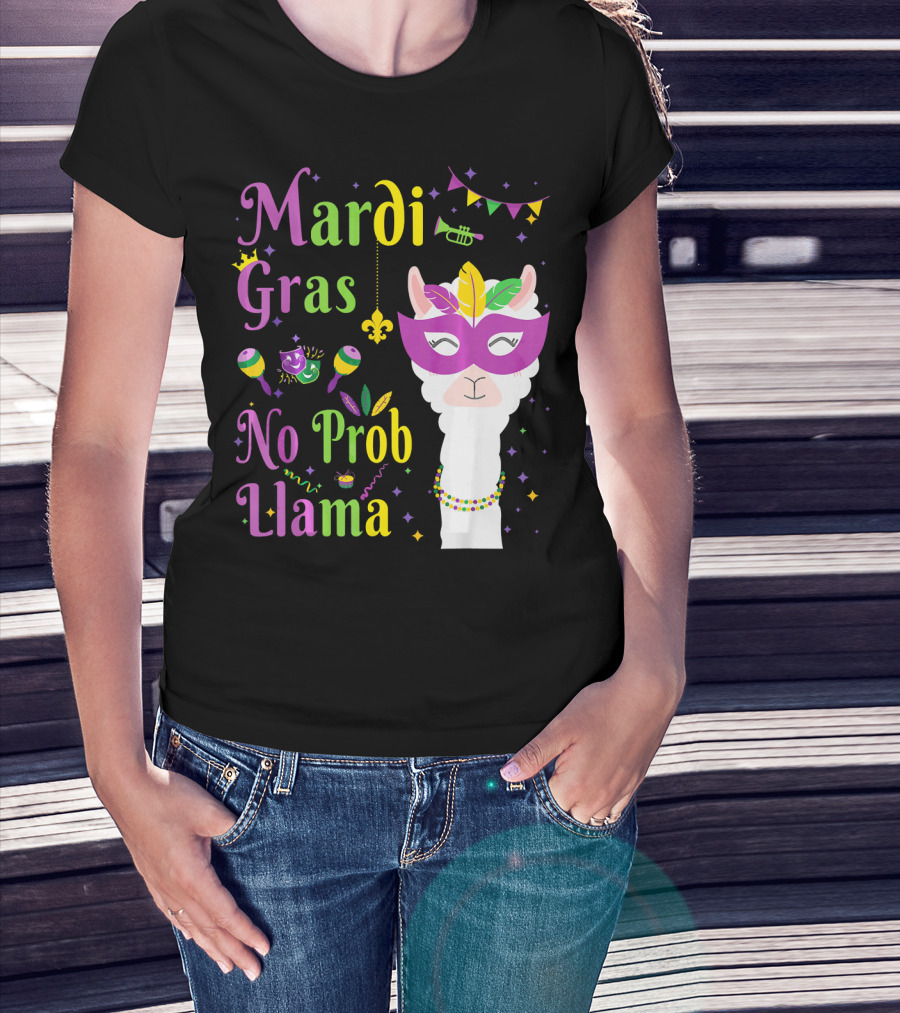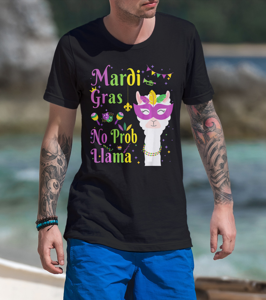 Mardi Gras No Prob Llama Funny Costume Masquerade T-Shirt