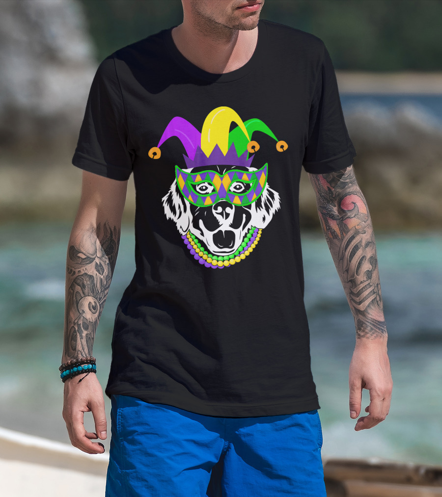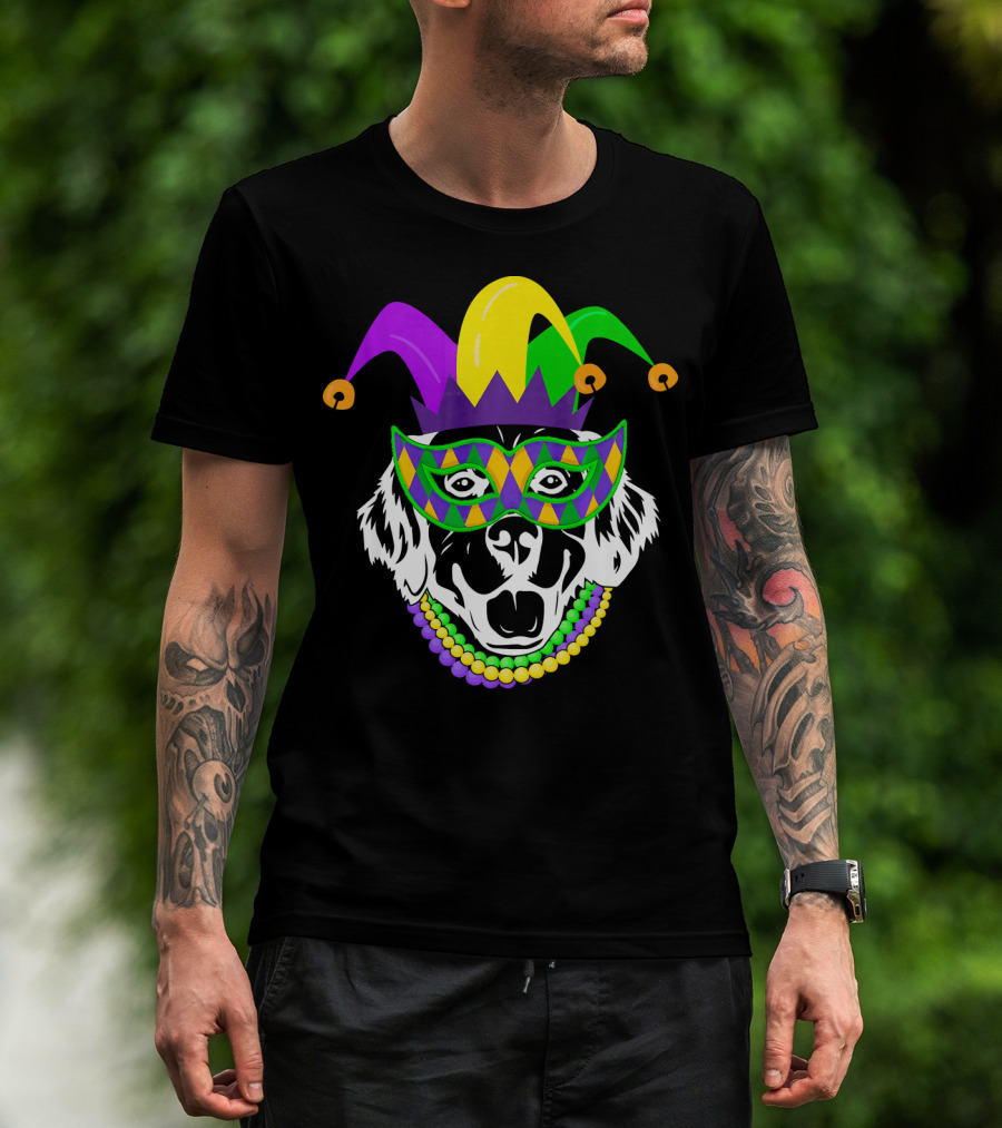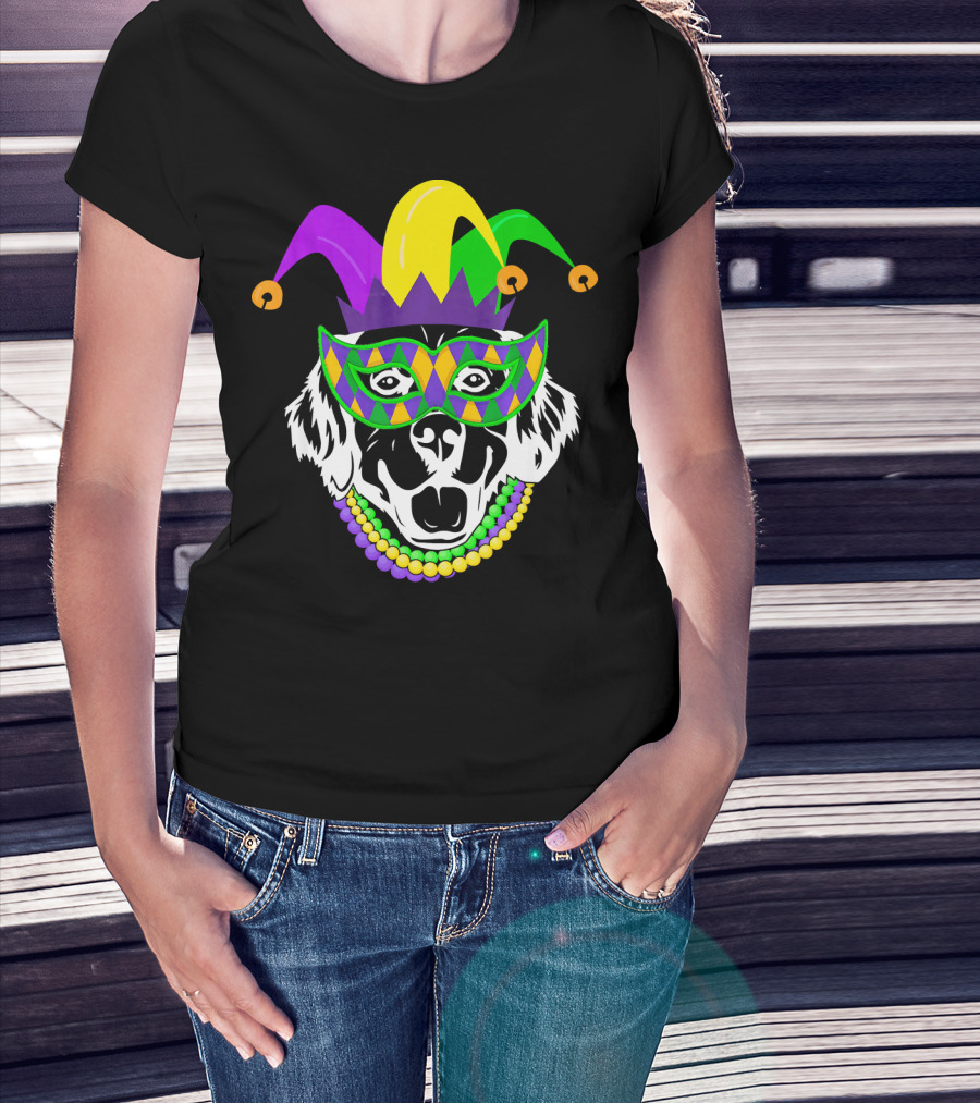 Mardi Gras Jester Hat Golden Retriever Beads Mask T-Shirt