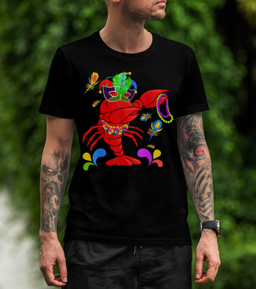Lobster Dabbing Mardi Gras Feather Bead Jester Hat T-Shirt
