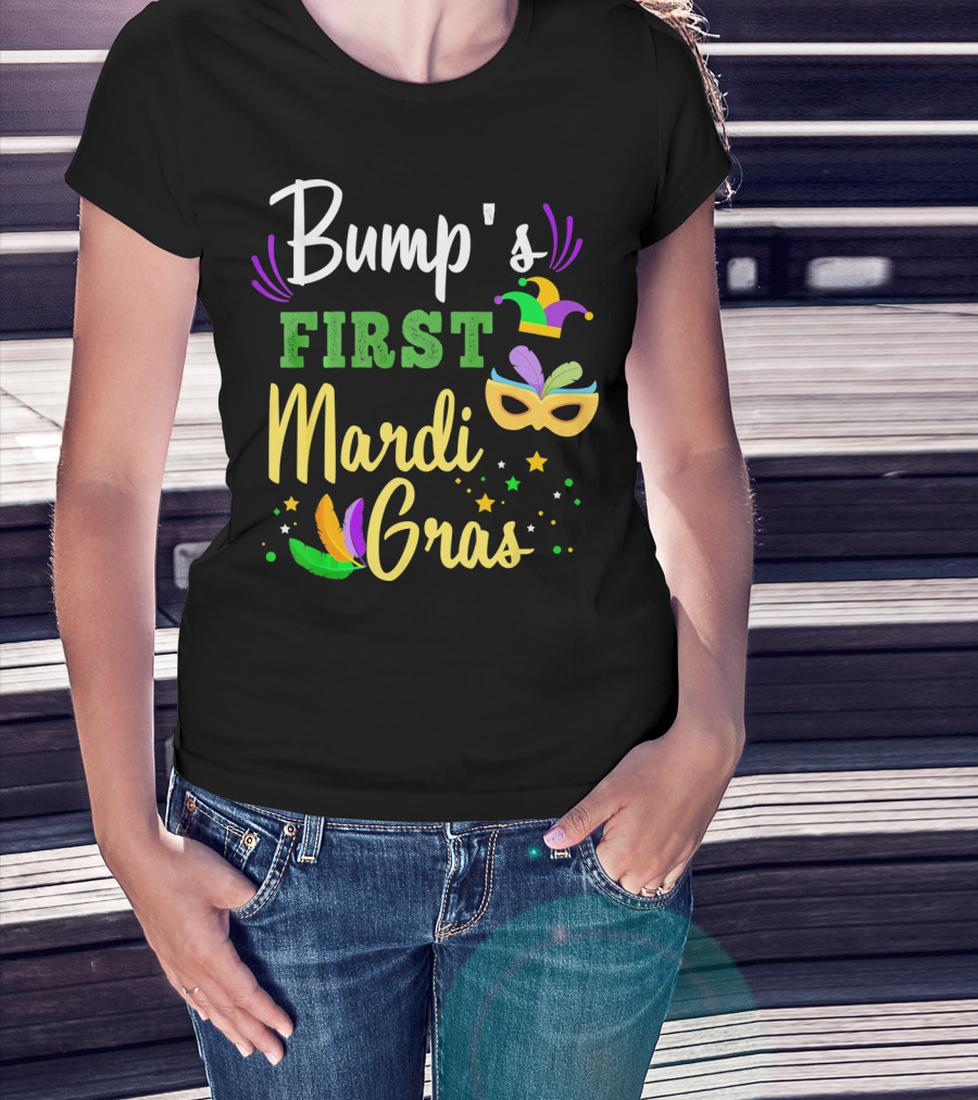Bump's First Mardi Gras Jester Hat Mask Feathers Stars T-Shirt