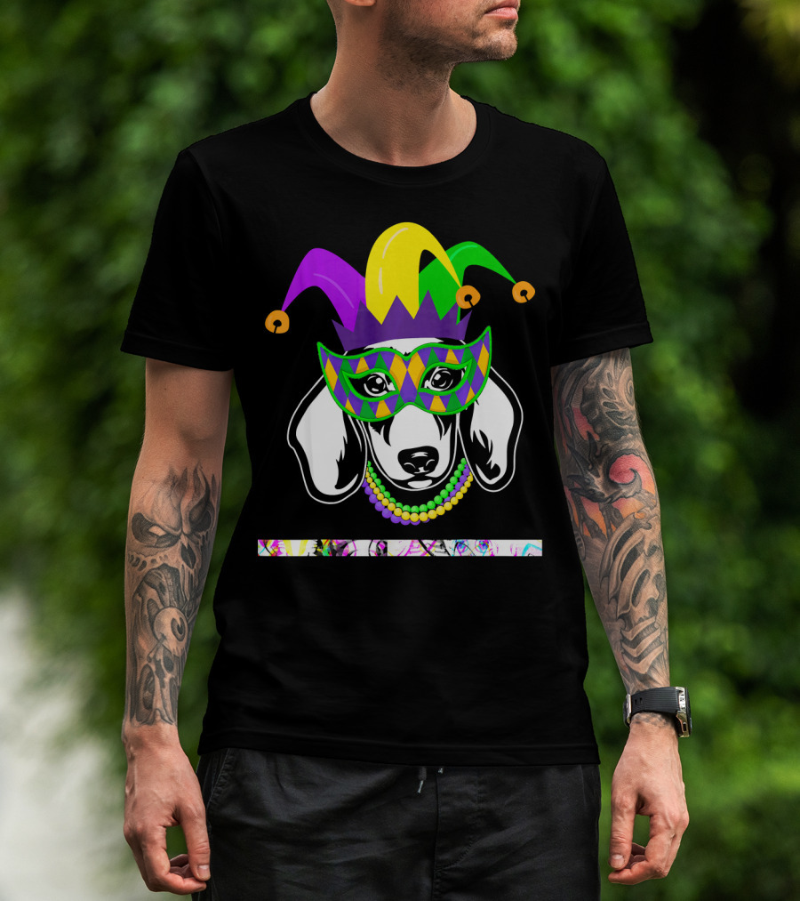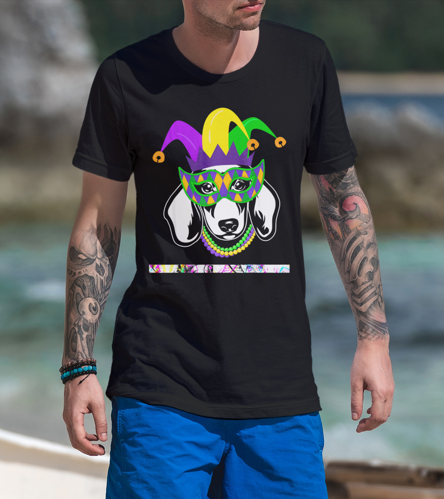 Mardi Gras Dachshund Jester Mask Beads Dogs Love T-Shirt