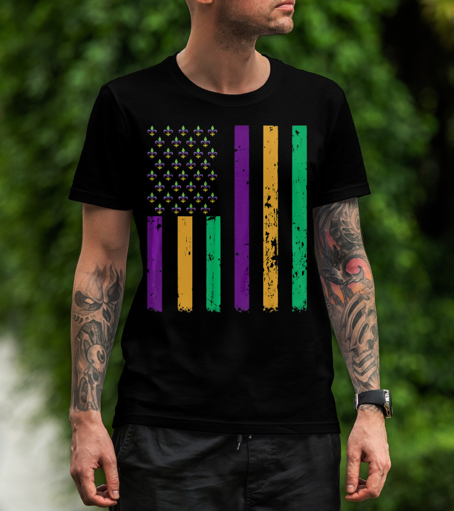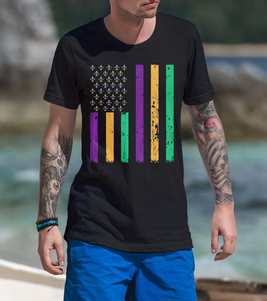 Vintage Fleur-de-Lis Mardi Gras American Flag T-Shirt