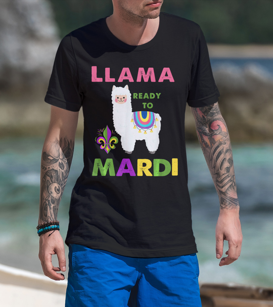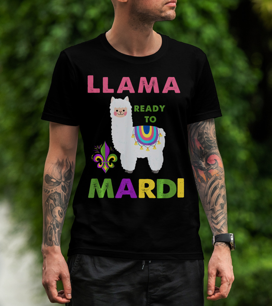 Llama Ready To Mardi Gras Fleur De Lis Festival Colors T-Shirt
