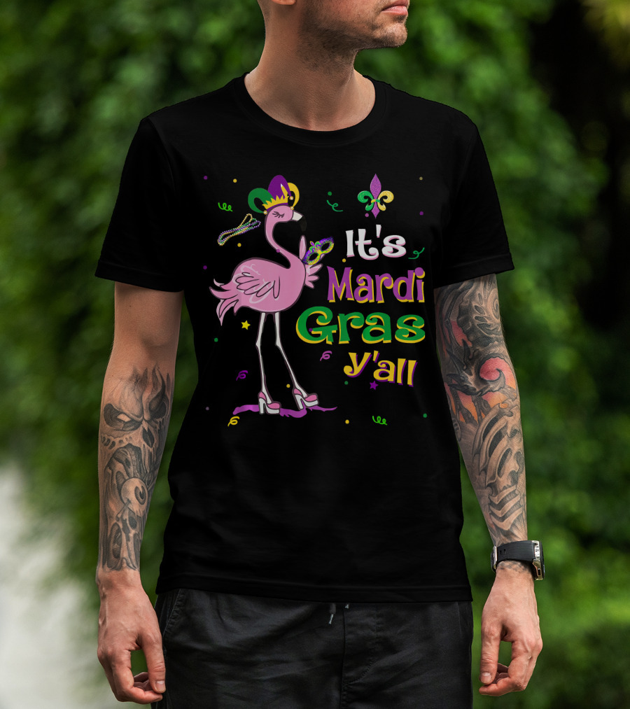 It's Mardi Gras Y'all Flamingo Wearing Jester Hat Fleur-de-Lis T-Shirt